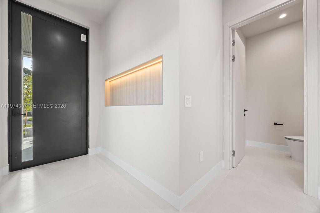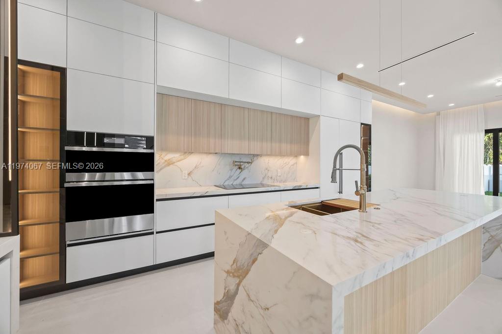 1135 & 1137 NE 11th Ave, Fort Lauderdale, FL – Lake Ridge New construction residence offering 4 bedrooms and 3.5 bathrooms in the desirable Lake Ridge neighborhood. Modern open-concept floor plan with floor-to-ceiling windows providing abundant natural light throughout. Contemporary glass kitchen design in white and light wood finishes, featuring panel-ready JennAir appliances and a spacious island overlooking the main living areas. Built-out closets provide functional storage solutions throughout the home. Primary suite includes a spa-style bathroom with oversized shower and custom closet build-outs. Dedicated laundry room with utility sink. Interior features include integrated ceiling speakers throughout the home and pre-wired security camera system. Private backyard with outdoor BBQ area and a 2-car garage. Modern design, quality finishes, and exceptional natural light.