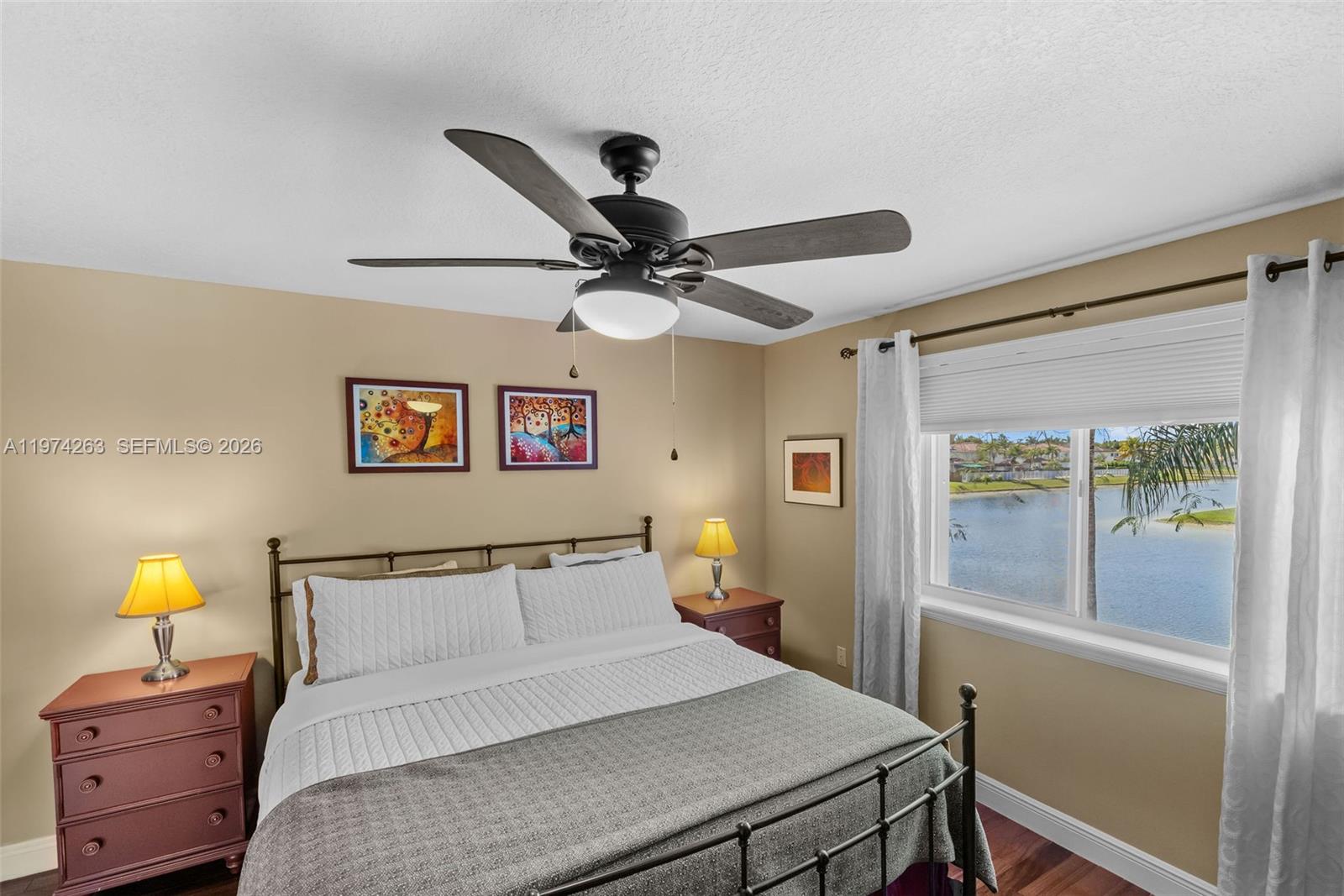 Presenting 4650 NW 109th Court, an exceptional waterfront residence set in a peaceful, elevated position toward the rear of the gated and highly sought-after Doral Meadows community. This true 4-bedroom, 2.5-bath home offers tranquil water views, quality upgrades, and a sense of privacy rarely found. The rear exposure overlooks open water, filling the living areas with natural light and showcasing beautiful sunset views. The layout blends formal and casual spaces with an effortless flow, ideal for both entertaining and everyday living. Interior features include travertine flooring, quartz kitchen countertops, generous cabinetry, and walk-in closets. The primary suite overlooks the lake and features a renovated bath (2021), creating a private retreat within the home. Recent improvements include a new roof (2024) with 10-year warranty, new patio pavers (2025), fresh interior paint (2024), a new refrigerator (2025), washer and dryer (2021), hurricane accordion shutters, impact doors and garage doors, an irrigation system, and A/C under maintenance contract. Parking accommodates up to six vehicles with a two-car garage and extended driveway, a notable advantage in the community. Residents enjoy gated entry with ADT monitoring and access to a community pool. The location offers walkability to A-rated schools, parks, and playgrounds, and is just one mile from Whole Foods, with convenient access to International and Dolphin Malls.