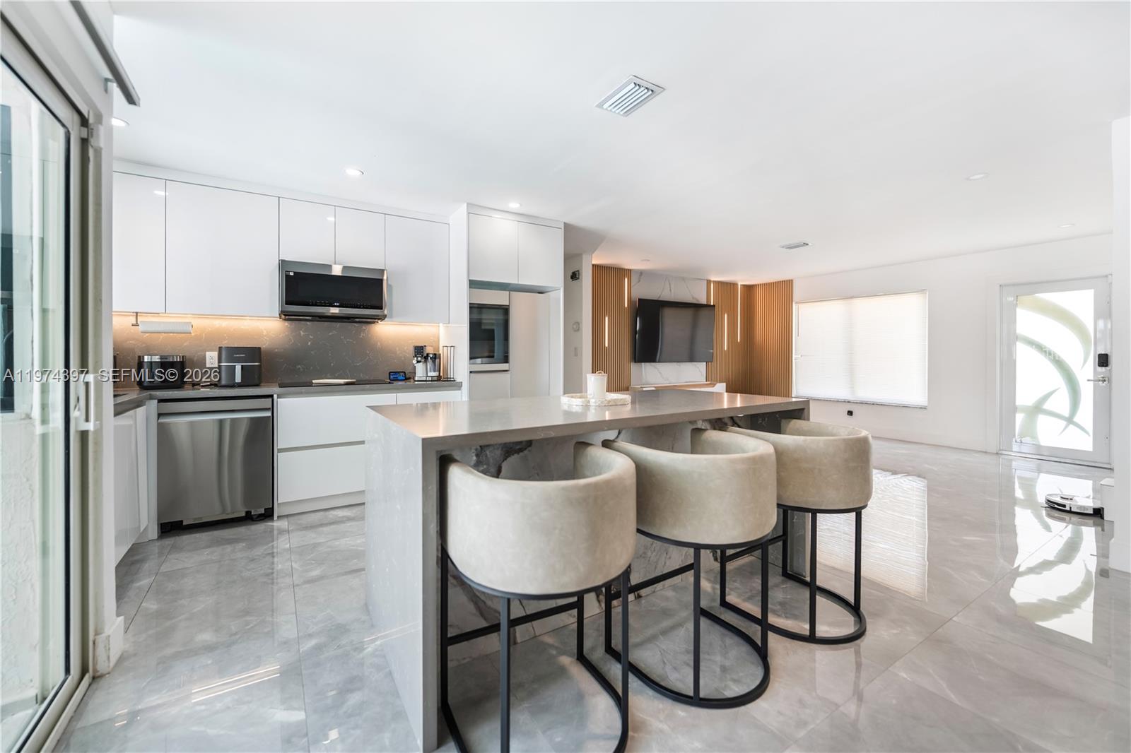 Discover your dream waterfront oasis in this beautifully updated 3-bedroom, 2-bath + den home offering modern living at its finest. Designed for both comfort and style, this move-in ready residence features impact windows and doors throughout, elegant ceramic tile flooring, and a completely new electrical system installed in 2026 for total peace of mind. The contemporary kitchen is a true centerpiece, showcasing sleek stainless steel appliances, modern cabinetry, and a stylish island that overlooks the sparkling pool—perfect for entertaining or everyday living. The open-concept layout is filled with natural light and flows seamlessly into sophisticated living and dining areas. Both bathrooms have been fully remodeled with modern finishes, creating spa-like spaces that elevate daily living. Step outside to your private backyard retreat and enjoy serene water views that provide tranquility and the ultimate Florida lifestyle experience. Whether relaxing poolside, hosting gatherings, or simply enjoying the peaceful waterfront setting, this home offers the perfect blend of design, functionality, and security. A rare opportunity to own a fully updated waterfront property ready to enjoy from day one.