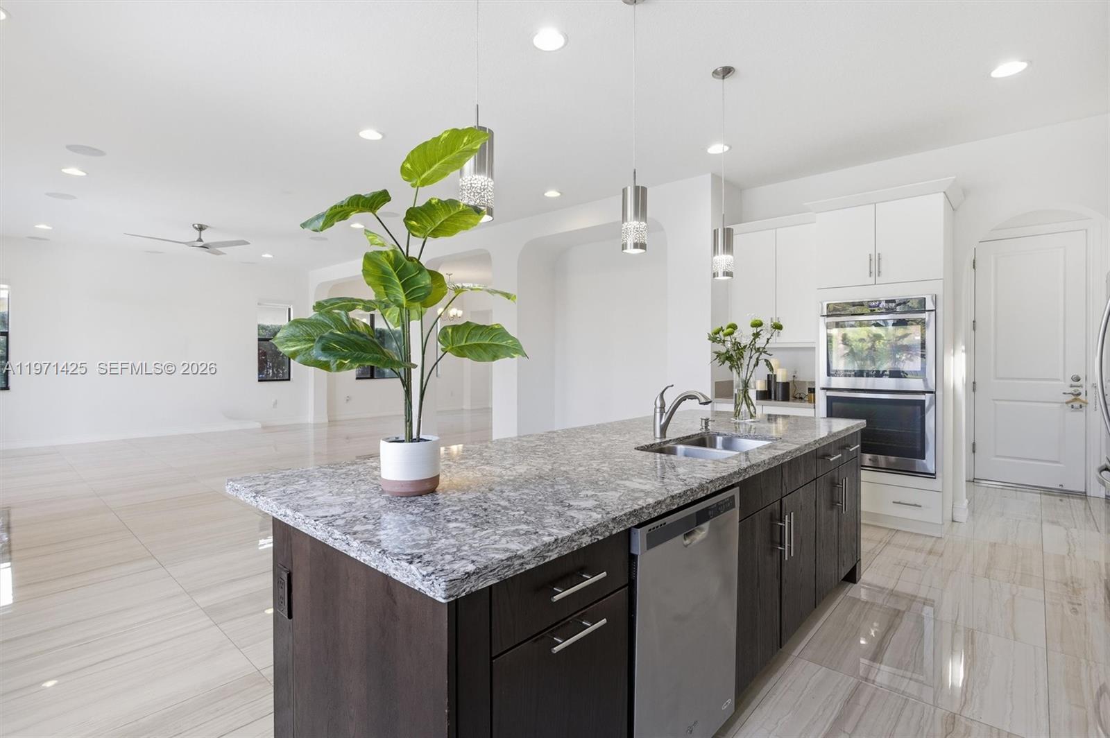 Enjoy South Florida's beautiful nights sitting out back by a customized pool. This stunning estate home is situated on one of the largest and most desirable lakefront lots in Raintree. Raintree is a luxury home community located in Pembroke Pines, offering a tranquil setting that residents adore. This home offers the perfect blend of luxury and comfort with over 4,000 SF of living space, 5 bedrooms, and 4.5 bathrooms. It is the largest model in the community & the only one featuring a three-car garage, providing ample space for vehicles & storage. Step inside to a quiet interior with impact windows & doors, an open concept floor plan with high ceilings that allow for dynamic pool & lake views, filling the home with natural light throughout. This two-story home exudes warmth & elegance, with the first floor featuring Italian porcelain (32x32) flooring throughout, creating a sophisticated & inviting atmosphere. Outdoor living is truly a dream with this modern, resort-style setting. The custom saltwater pool is both heated & equipped with a cooling feature, surrounded by over 2,500 sq. ft. of marble pool decking. An additional 1,500 sq. ft. landscaping with fruit trees enhances the outdoor space, making it perfect for relaxation or entertaining guests. This gorgeous home is located in an immaculate gated community that is secure & offers a range of amenities including a community pool, gym, clubhouse facilities, and a children's playground expected to be completed in 2026.
