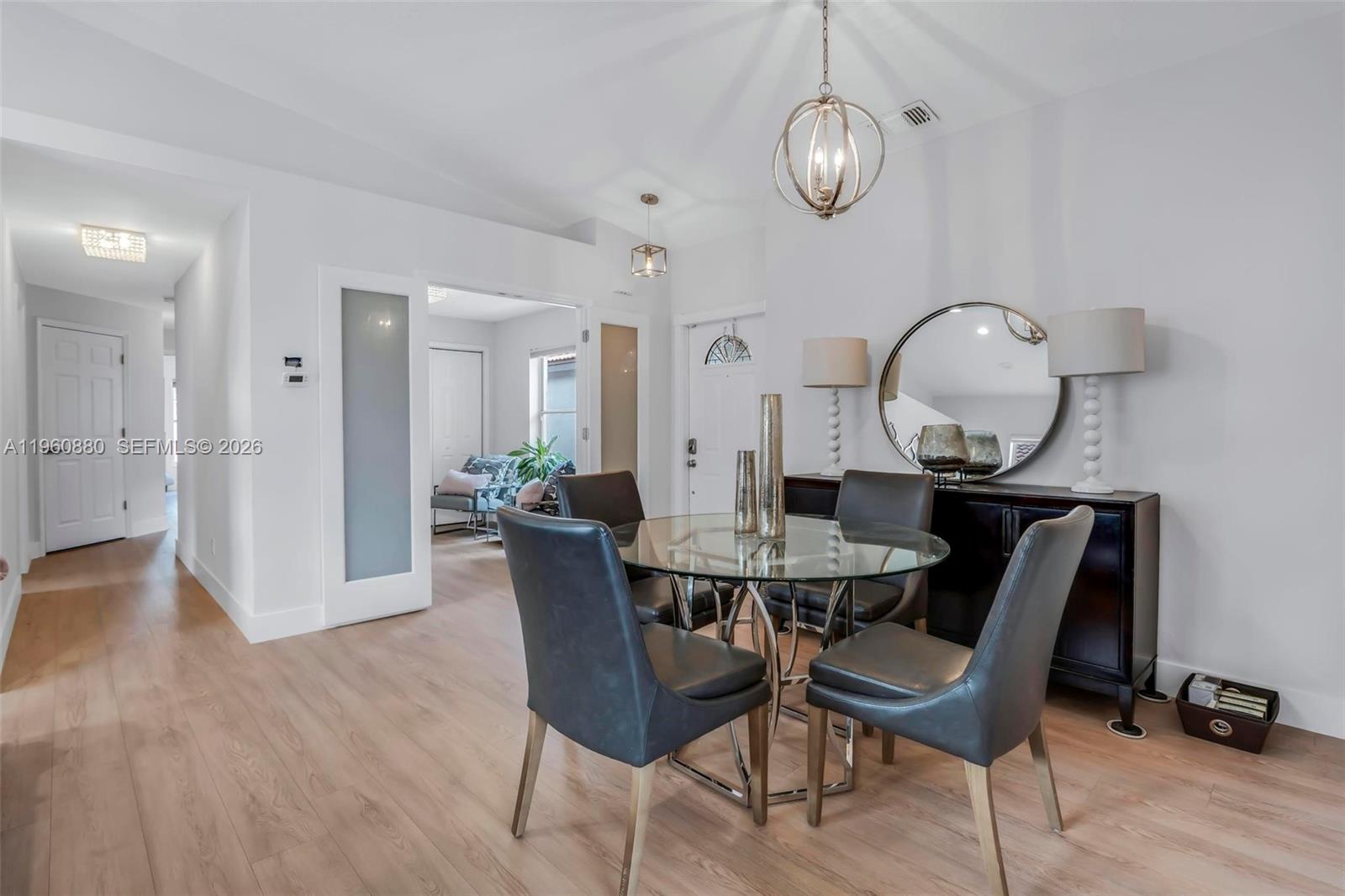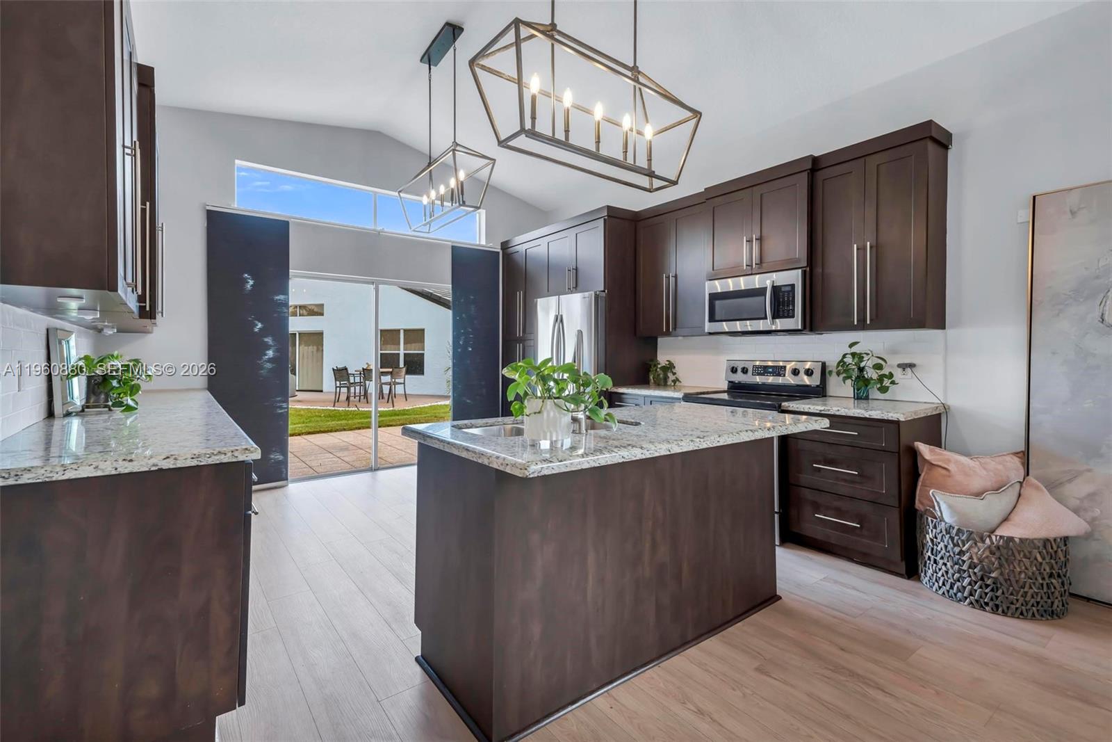 Beautiful 4-bedroom, 2-bathroom home featuring soaring vaulted ceilings and an abundance of natural light throughout. The bright, open layout seamlessly connects the spacious living room and newly updated kitchen, creating the perfect space for both everyday living and entertaining. The kitchen features stainless steel appliances, tons of cabinet space for storage, and ample counter space. Enjoy brand-new flooring throughout the home along with fresh interior paint and beautifully updated bathrooms that give the home a clean, modern feel. The generously sized bedrooms provide comfort and flexibility for family, guests, or a home office. Step outside to a nice patio area, perfect for relaxing or entertaining. Move-in ready and offering the perfect blend of space, updates, and functionality.