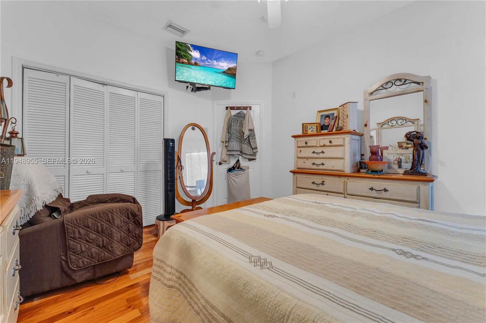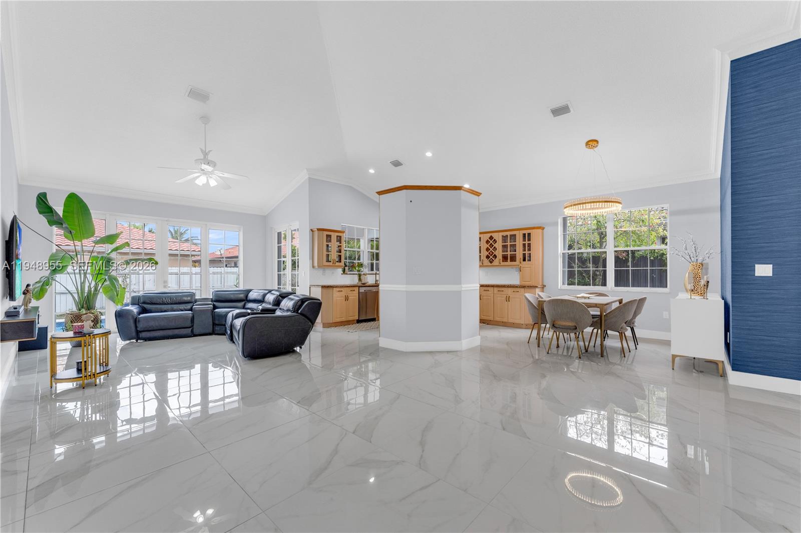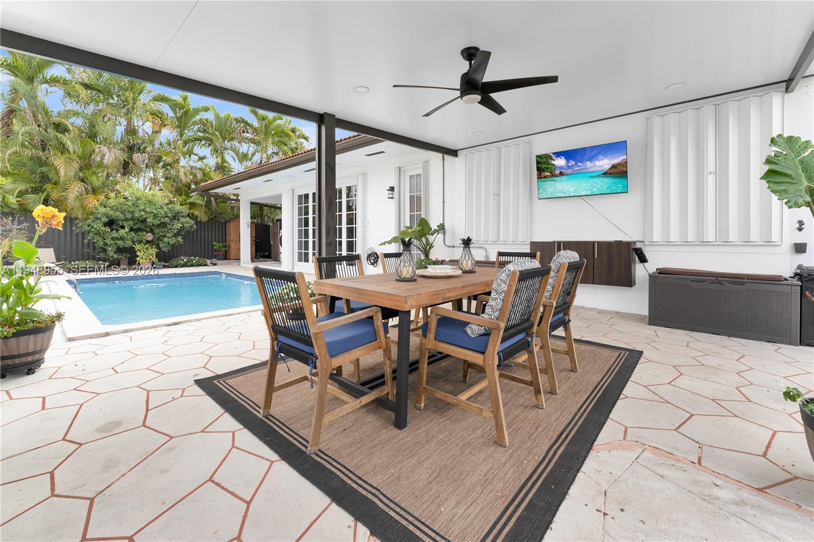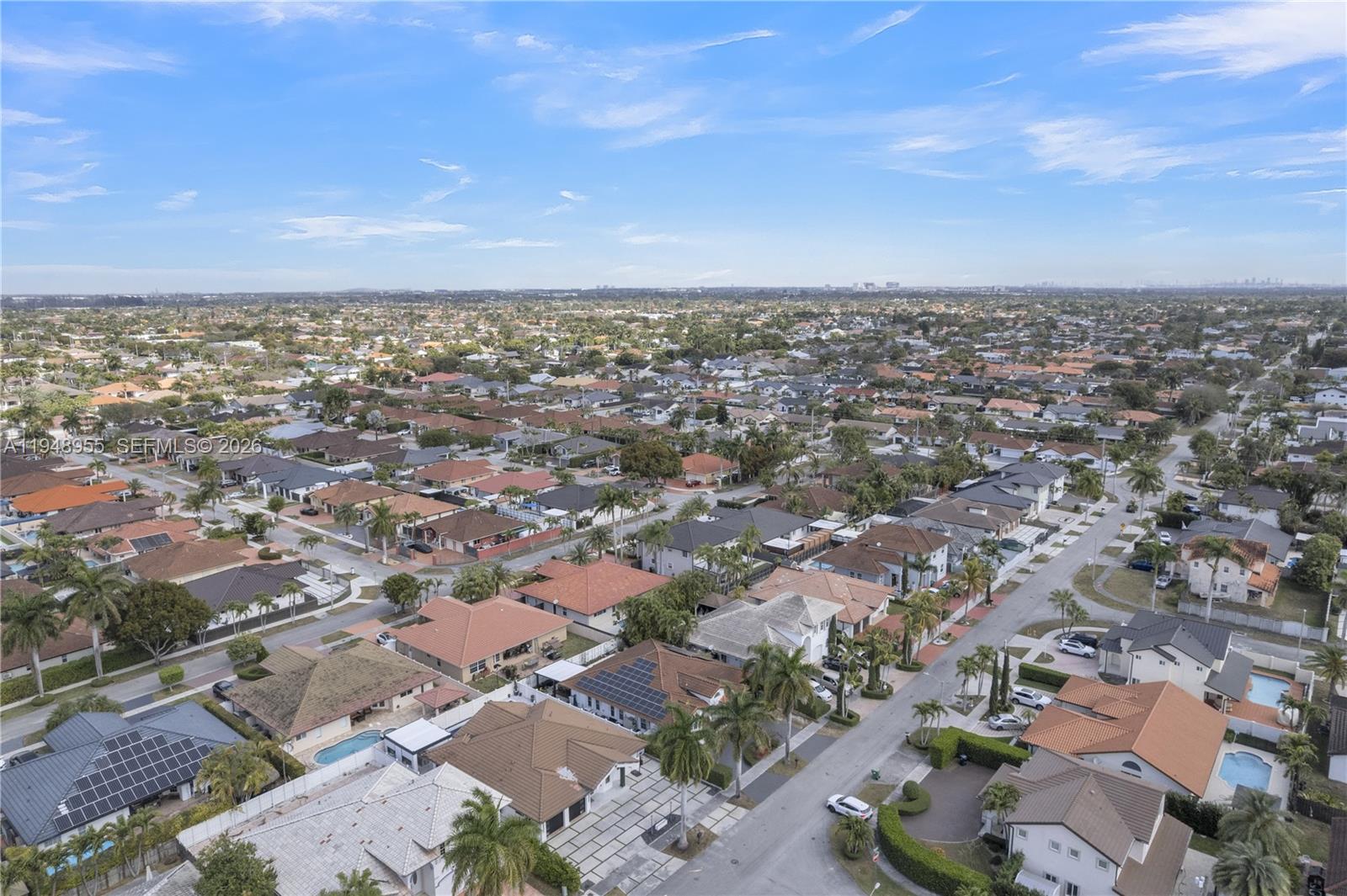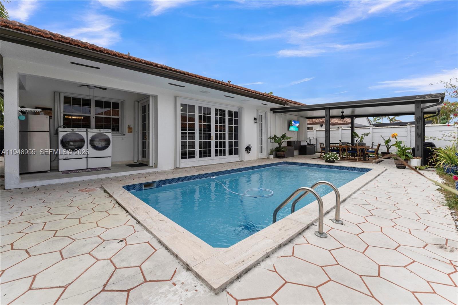 Beautiful one-story single-family home in the heart of West Miami with no HOA. This spacious residence features 4 bedrooms, 3 full bathrooms and over 2,200 sq ft of living space with vaulted ceilings and a bright, open layout. The home offers Brazilian cherry wood flooring in all bedrooms, generous living and dining areas, and a comfortable family room ideal for everyday living and entertaining. The converted garage efficiency with its own private entrance provides excellent potential for rental income, guest accommodations, or multi-generational living. Step outside to enjoy the private backyard with a pool and an outdoor pergola with lighting, perfect for relaxing or hosting gatherings. Additional highlights include solar panels, accordion hurricane shutters on all windows, and a circular driveway with parking for up to four vehicles. Conveniently located near major highways, shopping, schools and parks, this home offers comfort, flexibility and income potential in a well-established neighborhood.