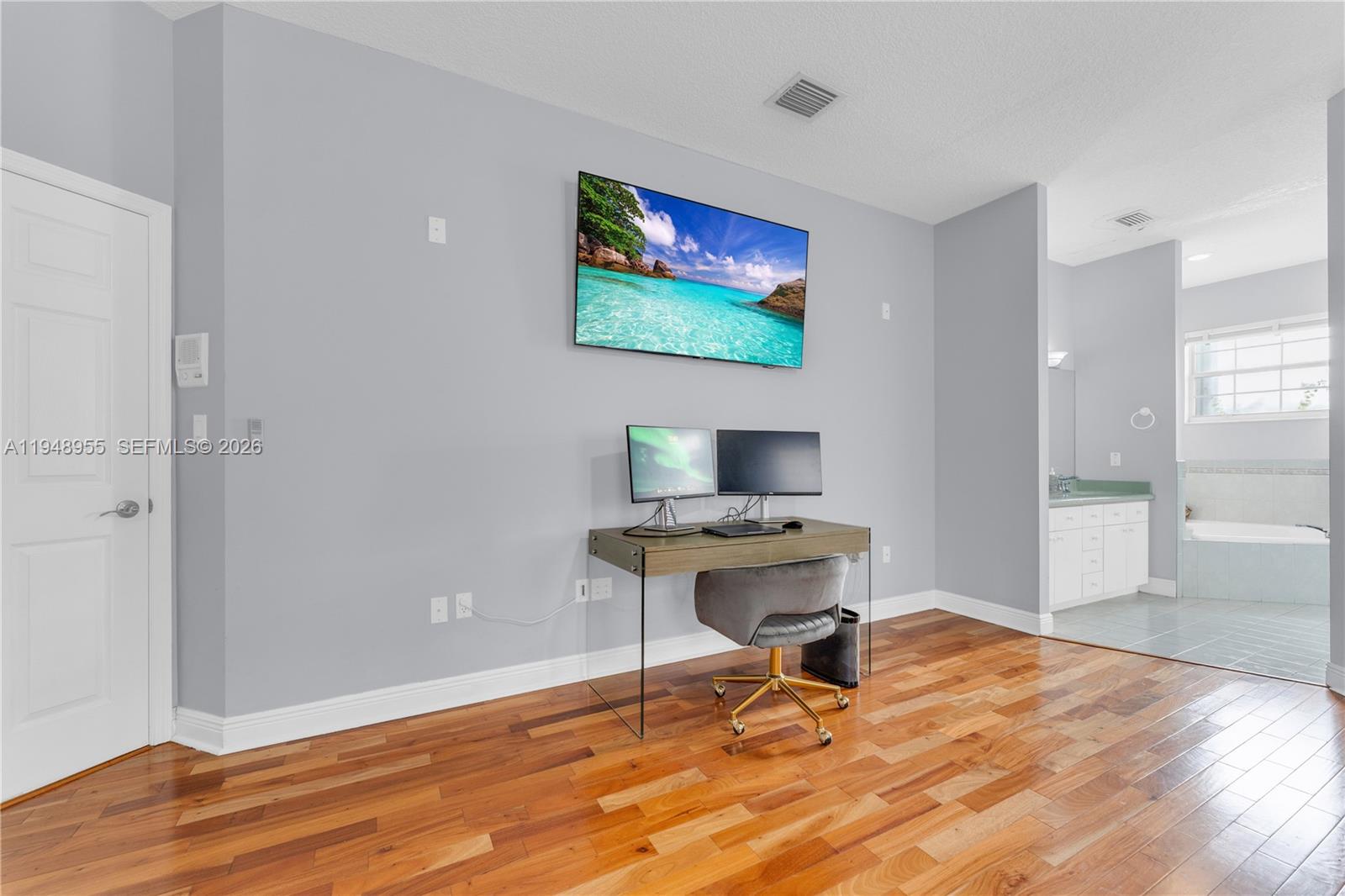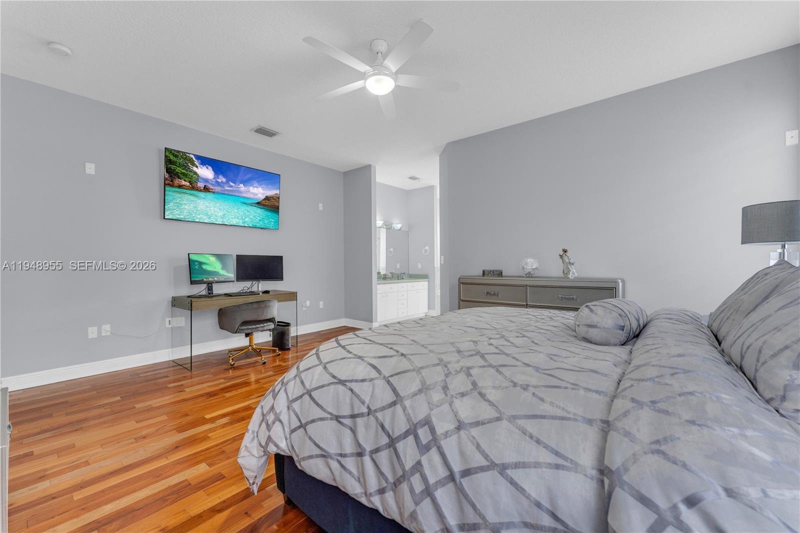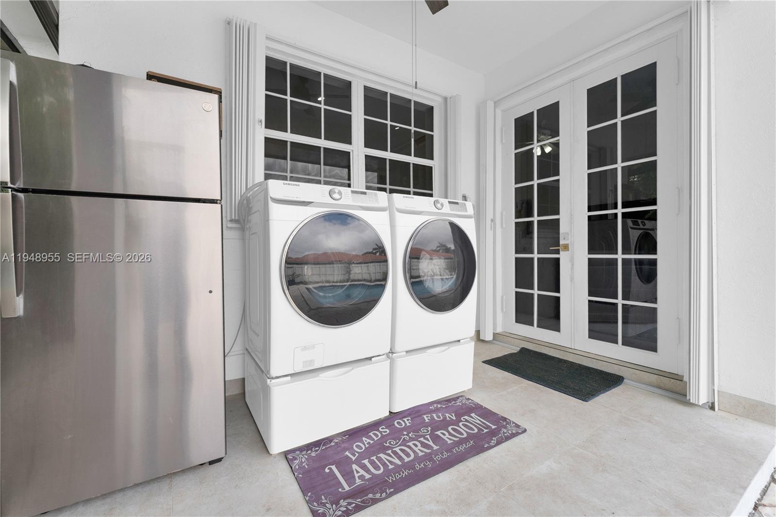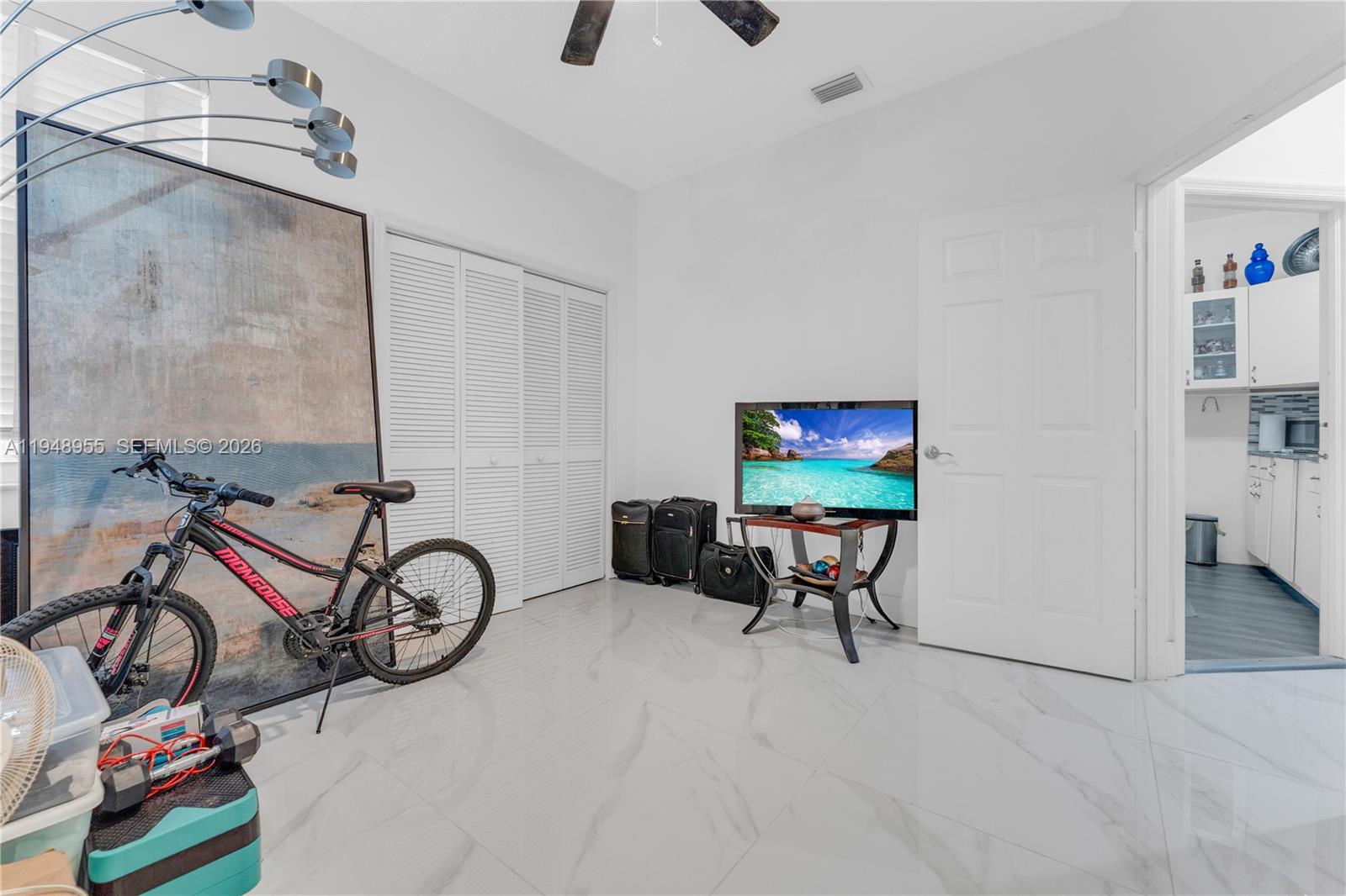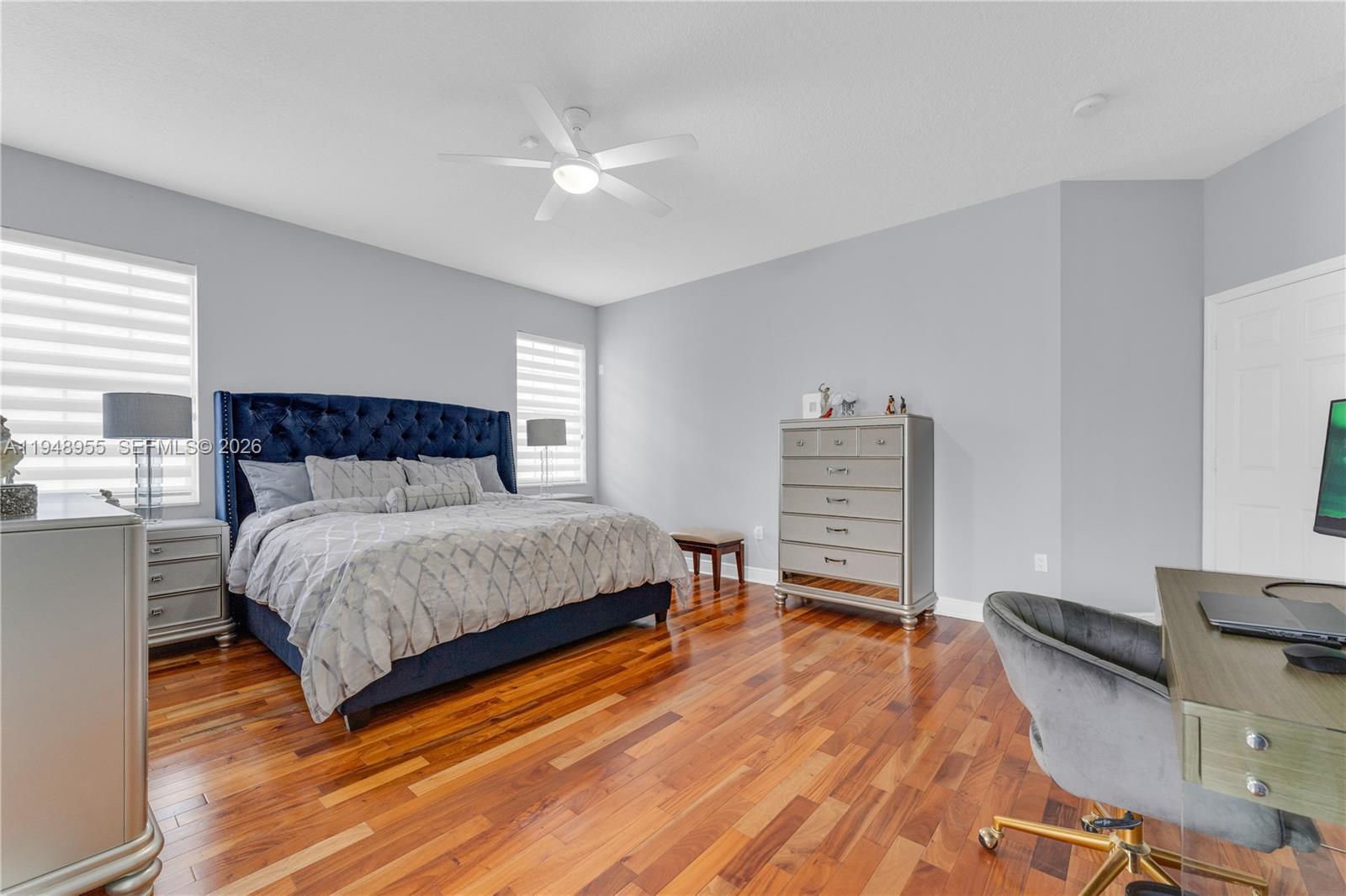 Beautiful one-story single-family home in the heart of West Miami with no HOA. This spacious residence features 4 bedrooms, 3 full bathrooms and over 2,200 sq ft of living space with vaulted ceilings and a bright, open layout. The home offers Brazilian cherry wood flooring in all bedrooms, generous living and dining areas, and a comfortable family room ideal for everyday living and entertaining. The converted garage efficiency with its own private entrance provides excellent potential for rental income, guest accommodations, or multi-generational living. Step outside to enjoy the private backyard with a pool and an outdoor pergola with lighting, perfect for relaxing or hosting gatherings. Additional highlights include solar panels, accordion hurricane shutters on all windows, and a circular driveway with parking for up to four vehicles. Conveniently located near major highways, shopping, schools and parks, this home offers comfort, flexibility and income potential in a well-established neighborhood.