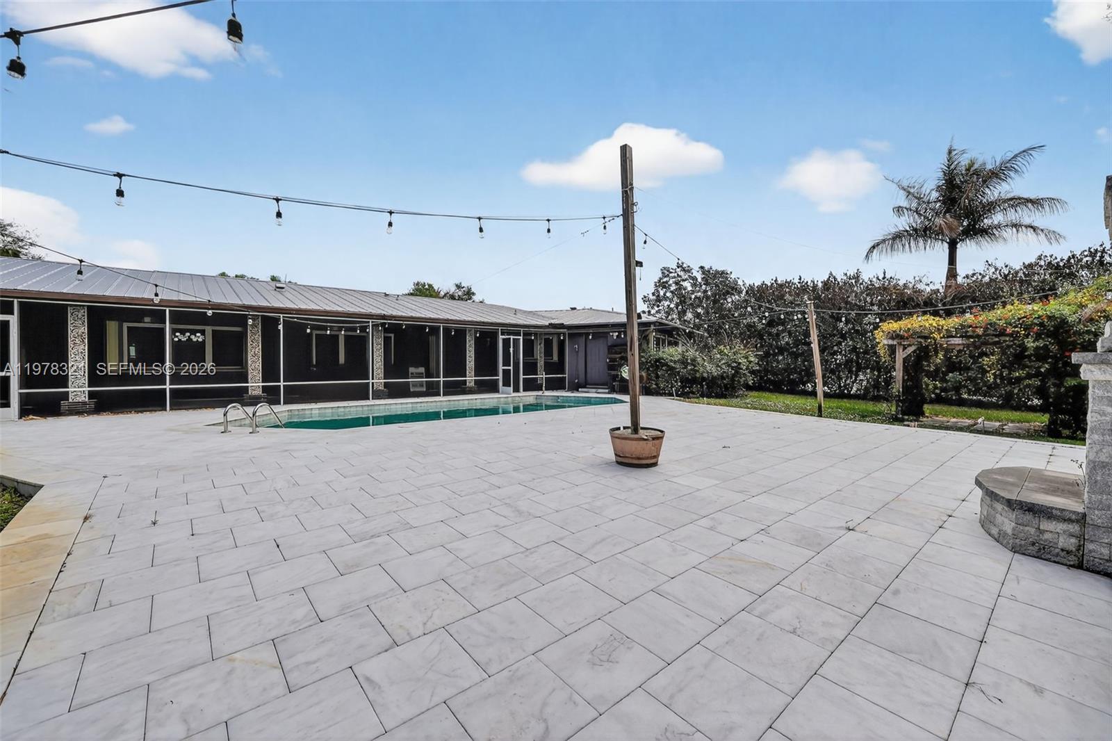 This exceptional 4150 Sq. Ft estate-style home sits on a spacious 0.85-acre lot and has been beautifully renovated throughout. The property features a newer metal roof and accordion shutters, providing both durability and peace of mind. The updated kitchen is designed for both functionality and style, featuring a double oven, contemporary porcelain induction range top, and a premium Sub-Zero refrigerator. Step outside to an elegant pool area with a newly finished stone patio, perfect for entertaining and hosting outdoor gatherings. A major highlight of the property is the solar panel system, which powers the entire home at virtually no cost. The system also supports an 80-gallon hot water heater, improving energy efficiency even further. Additional features include: A private office off the primary bedroom. Updated bathrooms with modern finishes. A circular driveway with a porte cochere, providing ample space for multiple vehicles of any size.