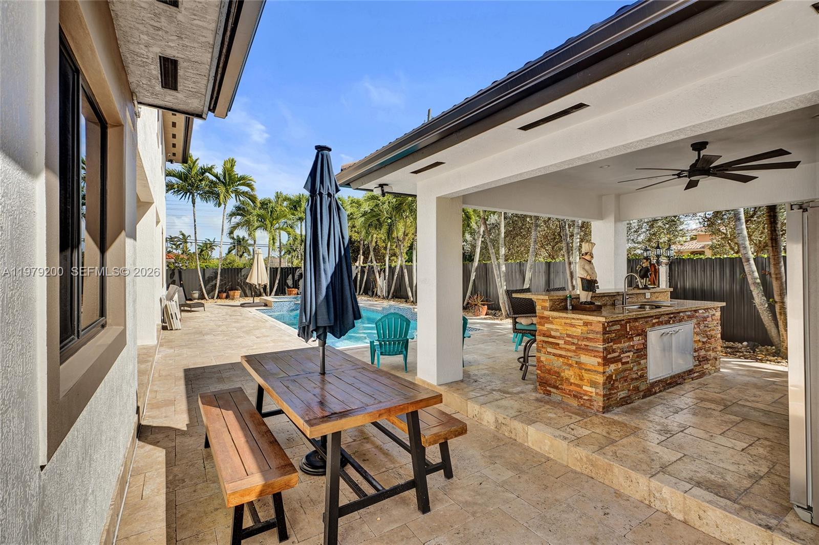 Stunning two story residence located on a quiet cul-de-sac with only four homes offering privacy, space & a functional layout for modern living. Spacious 5 bedrooms/4 bathrooms home features high ceilings, abundant natural light and an open floor plan ideal for everyday living & entertaining. Main level offers expansive living & dining areas that flow into a gorgeous kitchen with wood cabinetry, modern finishes, induction cooktop & wine cooler. One bedroom is located on the first floor along with a versatile extra room ideal for office, gym, playroom or potential 6th bedroom with a full bath adjacent to both. Oversized primary suite provides a private retreat with office area & custom walk in closet for maximum storage. Beautifully upgraded bathrooms throughout. Includes newer A/C systems, impact windows & doors, automatic curtains, new lighting & fixtures, alarm/camera security system, new pool pump & heater, new jacuzzi pump, top of the line washer & dryer. Garage features tile flooring, new mini split A/C and private entrance, offering excellent potential for a mother in law suite, gym or workspace. Backyard designed for entertaining with resort style pool, covered patio & outdoor kitchen plus fence for added privacy and security. Expanded driveway provides additional parking. Located near major roads, shopping, dining & schools. Move in ready and no association. Schedule your showing today.