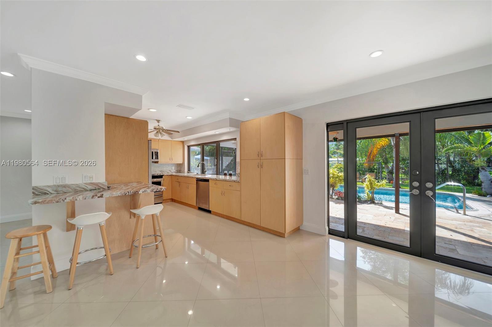 Timberlake in Cooper City! Those who know CC know this is a highly coveted area and homes like this rarely come available - This is a spacious 3-bedroom, 2-bath pool home on the water with a nature lover's back yard. Enjoy nearby top-rated Cooper City schools. Convenient location near Brian Piccolo Park, Tree Tops Park, shopping, dining, major highways and houses of worship. This home features tile and laminate flooring throughout, full hurricane protection on all openings, and a 2-year-old roof with warranty. A/C is newer, as is the pool pump and automatic saltwater system. Pride of ownership is apparent. All systems have been recently updated or meticulously maintained. Interior has been professionally painted with SW Snowbound, the best off-white 'color' and the best paint money can buy. Kitchen features gorgeous granite countertops, tons of cabinetry for easy storage and organization options, stainless steel appliances, and overlooks the pool and backyard. Washer and Dryer are indoors 'under air' in a generously-sized laundry room. Enjoy exceptional outdoor living with a retractable screened patio facing the pool, a natural travertine pool deck, and a spectacular oversized backyard overlooking the canal. Lush foliage and beautiful landscaping create a classic Old Florida tree canopy feel, providing shade, privacy, and a serene backyard retreat. Easy to show. Call today for a private tour.