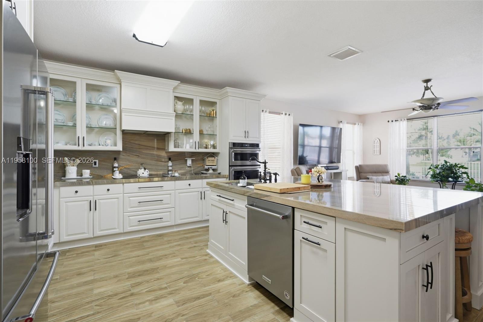 STUNNING LAKEFRONT HOME IN PRESTIGIOUS WEST MIRAMAR TURNKEY – WEST OF FLAMINGO ROAD This exceptional residence features high-end finishes throughout. The chef’s kitchen offers quartzite countertops and backsplash, premium KitchenAid appliances, double oven, and a custom appliance pantry with coffee bar. Enjoy a private, fully fenced lakefront setting with resort-style pool, expansive pool deck, and covered under-roof patio—perfect for entertaining and outdoor living. The second floor includes a renovated classic staircase, matching flooring at the landing, plush carpeted bedrooms, and partially renovated bathrooms, including a Jack-and-Jill bath with tub. Located in a highly sought-after family community with excellent schools from elementary through high school. Close to parks, shopping, dining, and major roadways. A rare opportunity to own a move-in-ready lakefront home in Miramar, AGAIN TURNKEY!