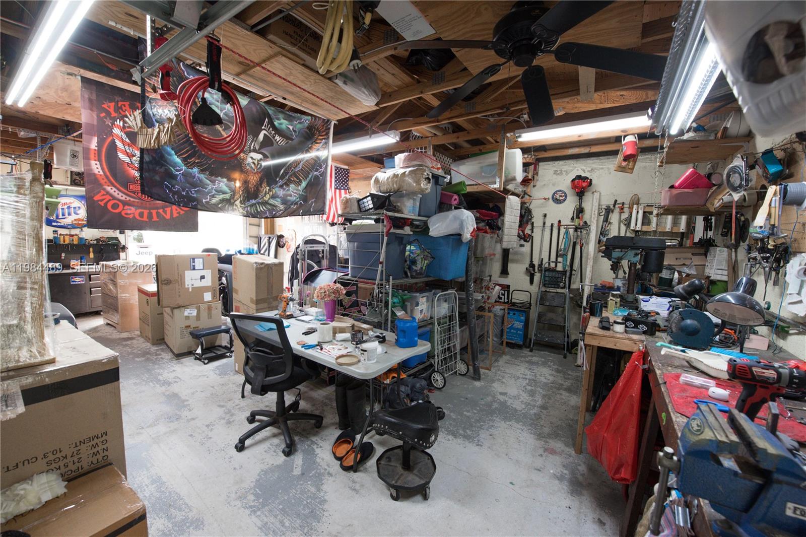 Charming 3/2 home in Mowry Drive Estates offering spacious indoor and outdoor living. Inviting living room with tile floors, fan/light, drapes, and double doors for great natural light. Comfortable family room features built-in shelves, tile flooring, and fan/light—perfect for relaxing or entertaining. Kitchen includes black & white tile countertops, stainless steel refrigerator and stove, plus a convenient snack bar. Dining area with chandelier adds a warm touch for gatherings. Primary suite features tile flooring, fan/light, walk-in closet, and a private bath with one sink and walk-in shower. Secondary bedrooms offer tile floors, blinds, ceiling fans/lights, and ample closet space. Second bath also includes a walk-in shower and one sink. Spare room currently used as a movie room but could easily be converted into an office or in law quarters. Enjoy outdoor living with a covered/screened patio, outdoor kitchen, and plenty of space for entertaining. Property includes a swing set/playground, additional covered storage, and a large front patio. Fully fenced with electric gate for added privacy. Oversized 4-car garage with 3 doors and workbench provides excellent workspace and storage. PROOF OF FUNDS AND/OR PRE-APPROVAL LETTER REQUIRED PRIOR TO SCHEDULING A SHOWING OF THE PROPERTY!