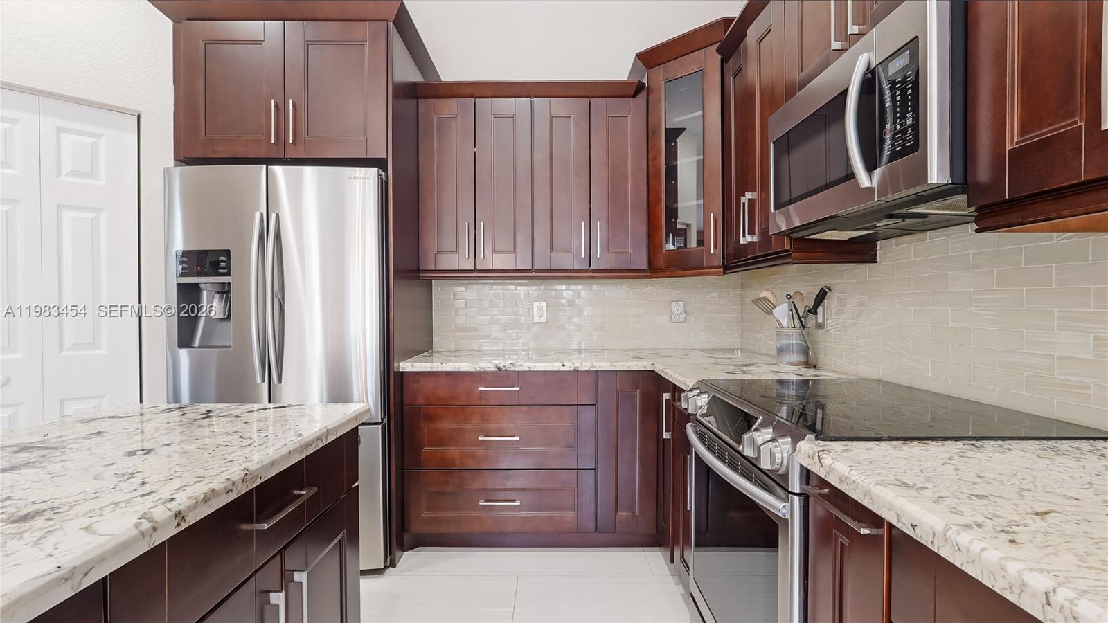 Beautifully updated and move in ready, this elegant home offers 4 bedrooms, 4 bathrooms, plus a spacious den that can easily be converted into a 5th bedroom, providing flexibility for guests, a home office, or multigenerational living. The home is filled with lots of natural light throughout, creating a bright and welcoming atmosphere. A brand new roof will be installed before closing, offering peace of mind and long term value for the new owner. The home welcomes you with a paved circular driveway and beautiful curb appeal. Inside, the living areas feature porcelain tile flooring, creating a bright and modern feel throughout the main spaces. The kitchen showcases granite countertops, sleek European style cabinetry, stainless steel appliances, a brand new dishwasher, and a pantry for additional storage. Upstairs, wood flooring adds warmth and elegance, while the primary suite offers very large walk in closets. All four bathrooms have been remodeled with high end finishes that elevate the overall design of the home. Additional upgrades include a modern iron stair railing and numerous thoughtful details throughout. Step outside to enjoy the private pool area with a full screen enclosure and covered patio spaces, perfect for outdoor dining and entertaining year round in South Florida. Located in one of Weston’s most desirable communities, this home combines comfort, style, and functionality in a setting known for its beautiful surroundings and top rated schools.