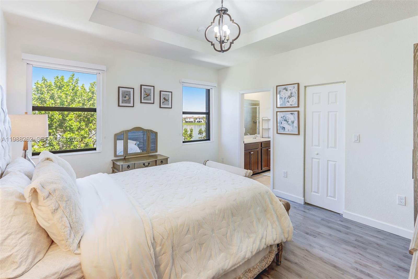 Beautiful corner-unit townhome with stunning lake views in the sought-after Aquabella community. This spacious 4-bedroom, 3 full-bath residence features a bright open-concept layout, stainless steel appliances, and abundant natural light throughout. A full bedroom and full bathroom on the first floor provide added flexibility, perfect for guests, in-laws, or a private office. Step outside to your private fenced backyard with electric retractable roof, creating the perfect space for year-round entertaining while enjoying peaceful water views. Located in a gated community offering resort-style amenities including clubhouse, pools, jacuzzi, fitness center, playground, and 24-hour security. Prime location near major highways, shopping, dining, and top-rated schools. A must-see, don’t miss this opportunity!