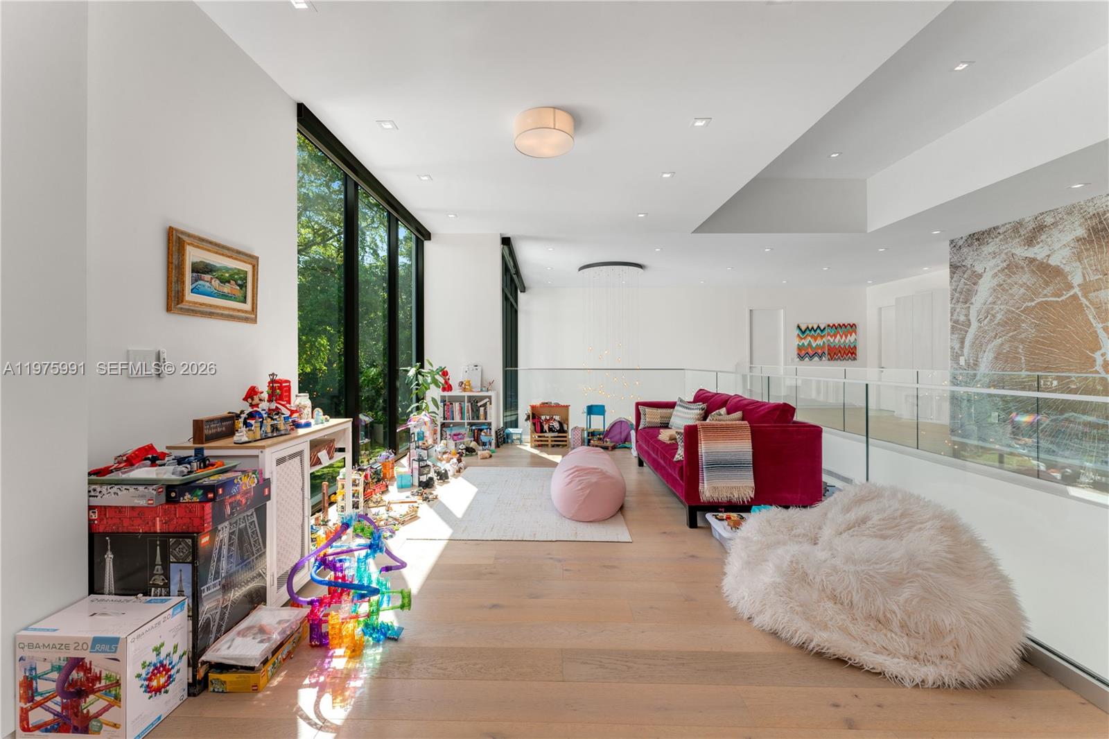 Completed in 2019 by Norway Builders, this exceptional residence sits on a coral ridge along a quiet, tree-lined street on a lush acre lot. Soaring 25+ ft ceilings and expansive open living areas are filled with natural light and overlook a professionally landscaped, resort-style backyard with sparkling pool. Upstairs offers 5 bedrooms, 4 baths, and a family room; the main level includes a VIP guest suite and staff quarters. High-end finishes feature an Italian kitchen and closets, Miele appliances, Spanish stone, oak floors, glass railings, and a dramatic pivot entry door. Per appraisal: 6,267 LA, 7,095 adjusted, 8,989 total. Includes 16kW solar and Tesla battery backup.