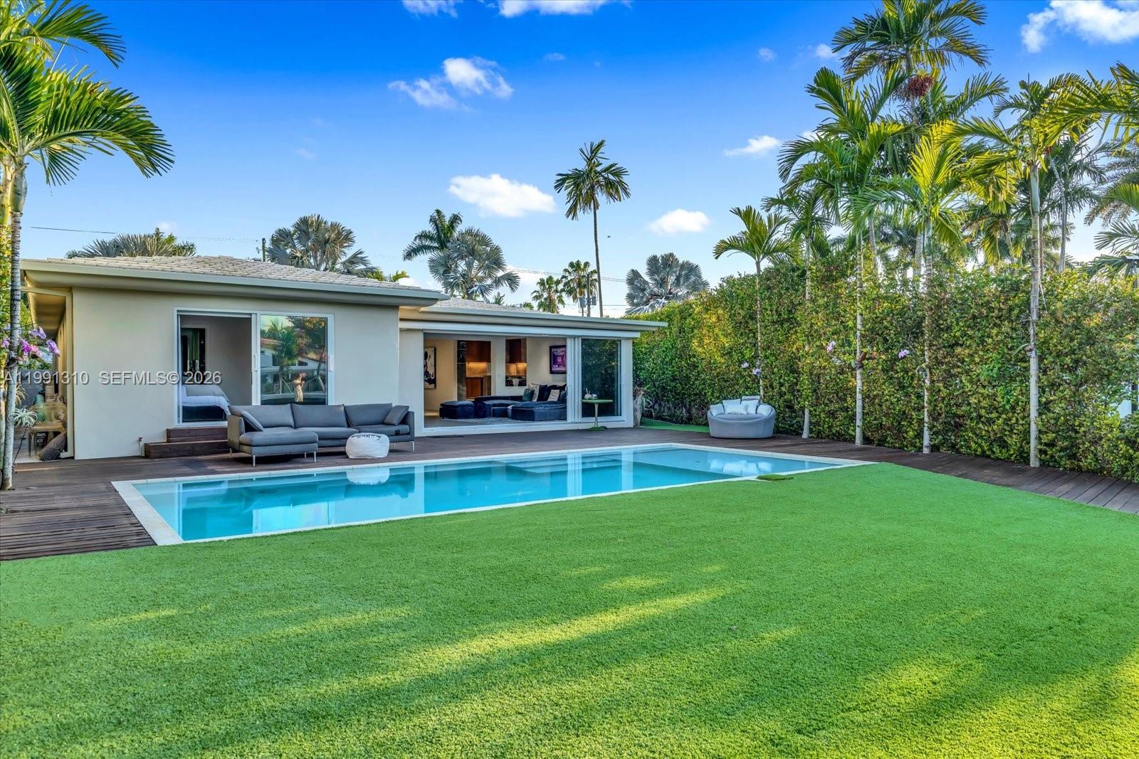 Waterfront retreat on secluded Biscaya Island in Surfside! This beautifully newly renovated residence, designed by renowned architect Gilbert Fein, offers prime waterfront with unobstructed access to the Intracoastal and open ocean—no fixed bridges. A rare opportunity for true boaters seeking both privacy and convenience. Designed for effortless indoor-outdoor living, the home features expansive open spaces filled with natural light, a sleek modern kitchen, and multiple living areas ideal for entertaining. Set within a very private and secure double-gated enclave, the home offers an unparalleled sense of exclusivity and peace of mind. The backyard is a private oasis, complete with a resort-style pool, oversized wood deck, lush landscaping, and tranquil water views. Dock your boat just steps from your home and enjoy the ultimate South Florida lifestyle. Minutes from Bal Harbour Shops, the beach, and world-class dining, this is one of the most unique waterfront offerings in the area.