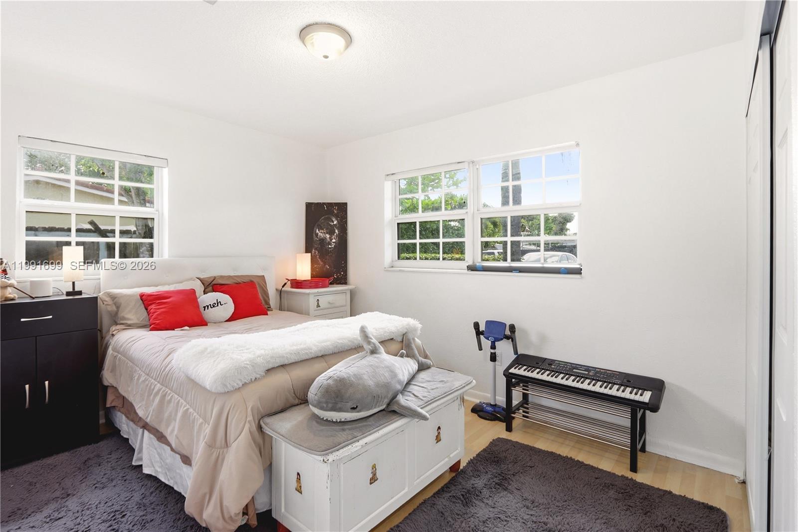 This spacious 5-bedroom, 3-bathroom residence set on an expansive ~0.4-acre lot, offering exceptional space, privacy, and comfort. A 1,250 SF addition (2008) introduces a private primary suite complete with its own A/C, spa-like bath, walk-in closet, garage, and additional storage. Interior finishes include porcelain flooring (2015) and a fully renovated bathroom (2024), complemented by multiple living and dining areas designed for both everyday living and elegant entertaining. Three terraces—including a spacious covered terrace updated in 2021—enhance the home’s indoor-outdoor lifestyle. The oversized backyard serves as a private retreat, featuring a resurfaced pool (2025), lush grounds, and two well-maintained sheds. Additional highlights include two primary suites, an oversized walk-in closet, and a side-entry garage. Nestled in a quiet, peaceful setting, this property offers the perfect balance of privacy and convenience.
