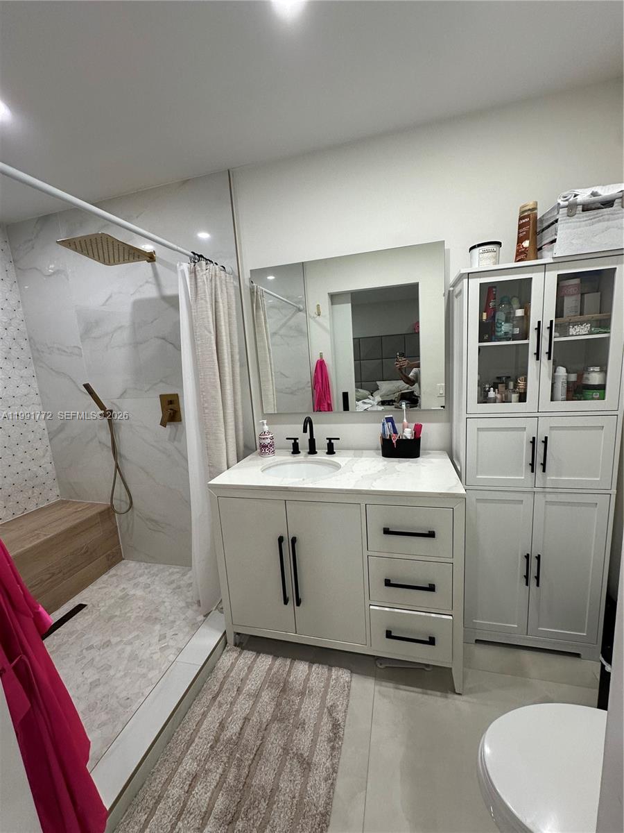 Stunning fully remodeled 3BR/2BA home in West Kendall. This move-in ready property features modern tile flooring, renovated kitchen and baths, and complete impact windows and doors, including garage door. Enjoy a private backyard with artificial turf and pergola, ideal for entertaining. Exterior security camera system installed. New roof and A/C (2022). One car garage with laundry and storage cabinets.