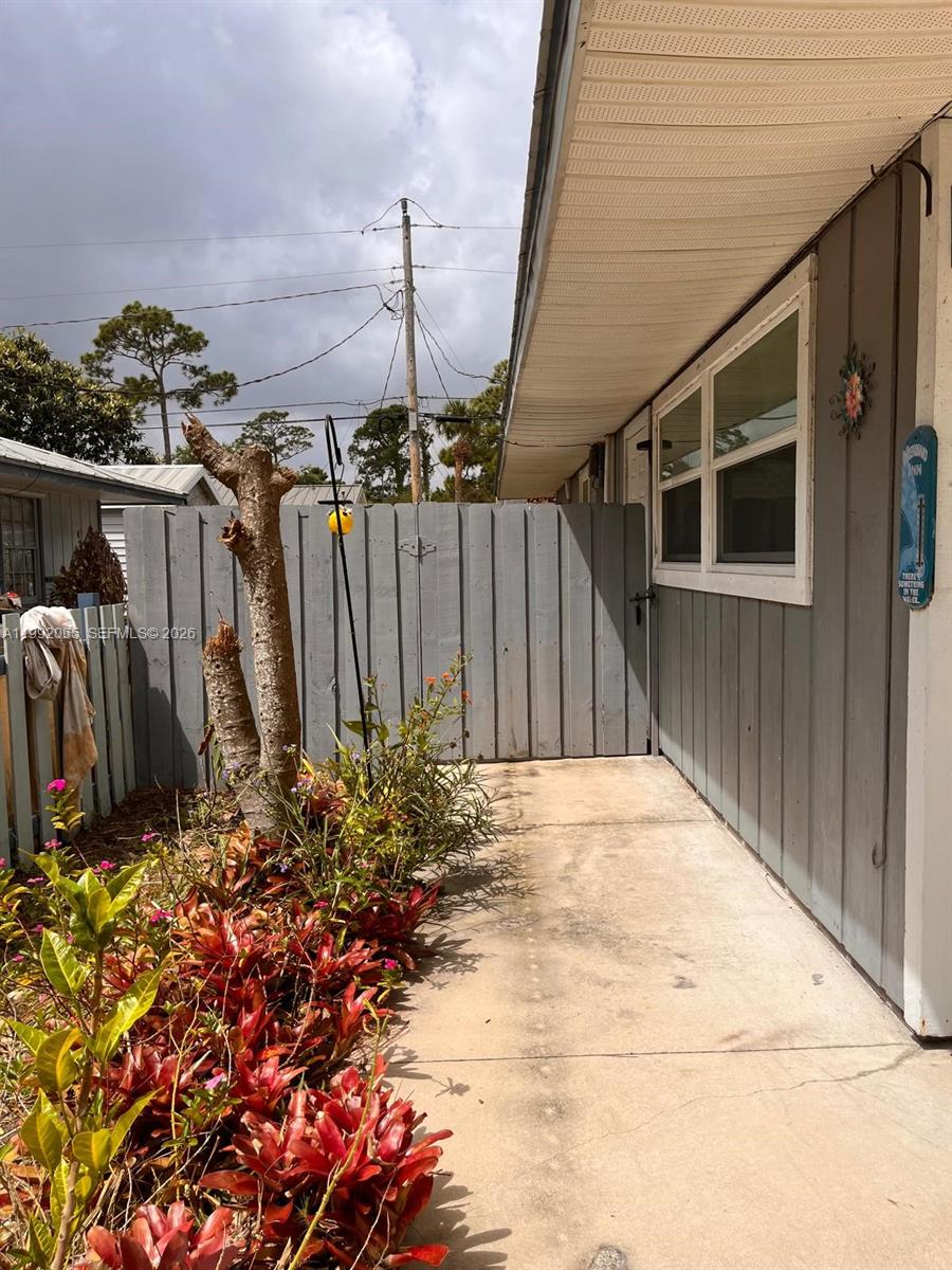 Welcome home to a stunningly renovated 2-bedroom, 2-bathroom home that perfectly blends modern luxury with tropical serenity. This move-in-ready residence is packed with high-end upgrades and coastal charm. The interior features new flooring, elegant French doors, and stylish barn doors. The unique layout includes two big rooms, Master bedroom is an ensuite, ensuring maximum privacy. The gourmet kitchen is a chef’s dream, boasting Quartz countertops with a custom tile backsplash, Quality wood cabinetry, 2023 Whirlpool electric stove and refrigerator, plus a microwave and dishwasher. Dedicated laundry room with washer/dryer included. Enjoy low maintenance and security with a Blue Metal Roof (2023) and Impact Windows throughout. Comfort is guaranteed by brand new air conditioning through out the house. Relax on the front patio or explore the fenced backyard, a botanical paradise filled with Bamboos, Gardenias, Mango, Poincianas, Palm trees, and more. The property also includes a large shed for extra storage. Perfectly situated near Osceola Magnet School, Cleveland Clinic, and Indian River Hospital. You are just minutes from the boutiques and dining of Downtown Vero and the world-class Vero beaches.