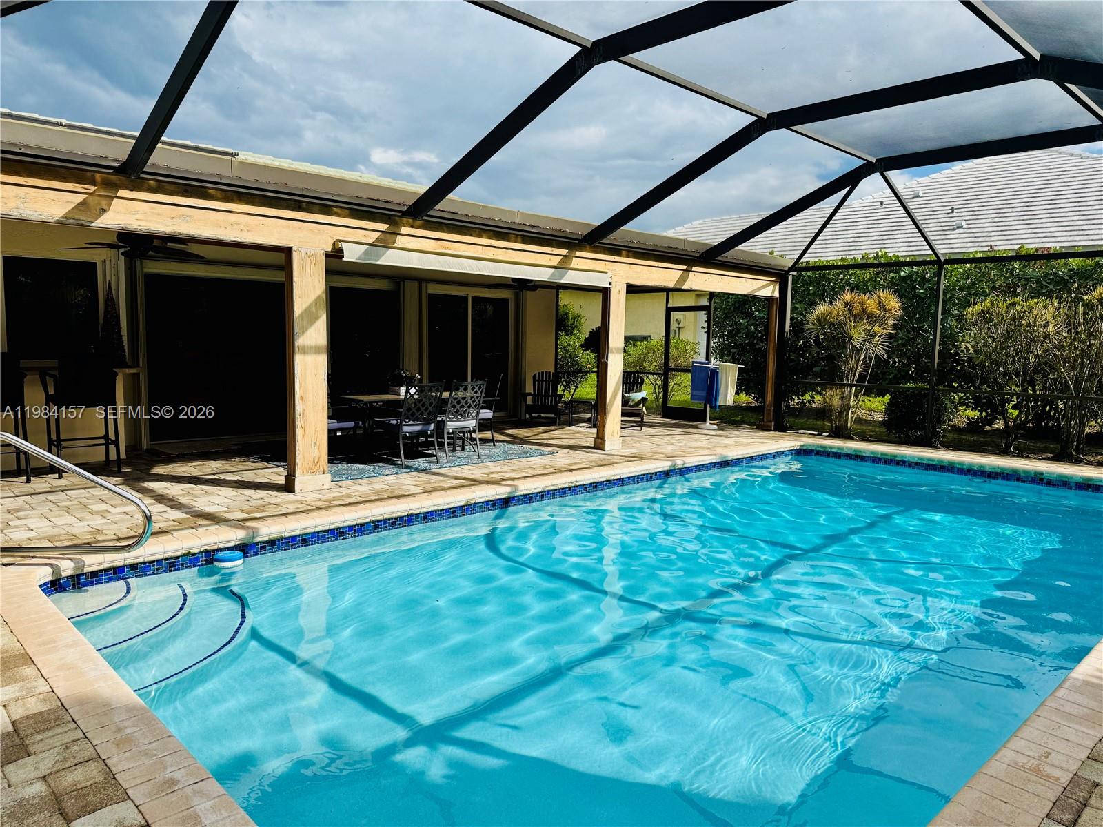 Full Florida living as this home is situated so close to Parks and allows the ability to Bike to the Waterfront. Live the Stuart Lifestyle- Voted Best Small Beachtown! Beautifully maintained lakeview pool home in the sought-after Yacht & Country Club of Stuart. This single story 3 bedroom, 2.5 bath, CBS home offers a highly desirable split floor plan featuring two spacious owner’s suites each with private en-suite baths and walk-in closets, all perfect for hosting guests or multigenerational living. Both suites open directly to the pool and include private en-suite baths, ample closet space and with one featuring a large soaking tub and separate shower for a true spa/retreat like feel. Light-filled living and dining areas flow effortlessly into an additional flexible space ideal for a home office, den, or game room. Recent updates include upgraded closets, fresh exterior paint, and a refreshed pool, which making this home move-in ready. Just outside your screened-in pool enjoy the peaceful lake view on this quiet interior lot. Located within a gated community with 24 hour security, low HOA, and optional club membership. Enjoy unbeatable convenience- so close to Sandsprit Park, local fitness amenities, or bike to Manatee Pocket’s popular waterfront restaurants and marinas, plus all that Stuart has to offer- endless restaurants and shops. Priced to stand out in one of Stuart’s premier communities. Contact the Membership Office for YCCS membership details.