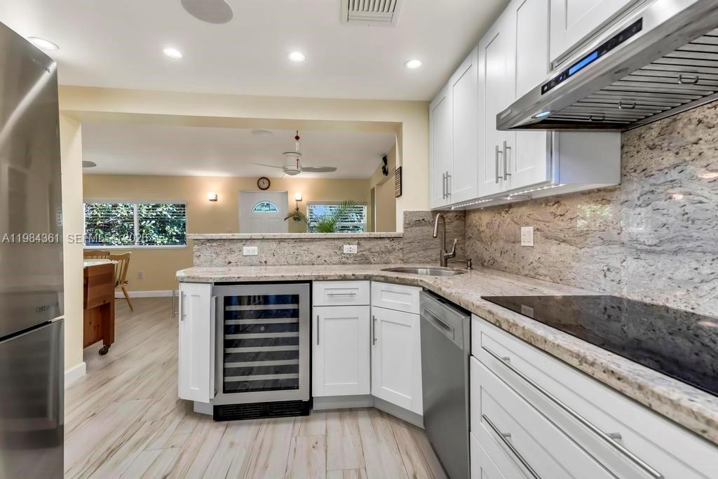 Fully renovated charming beach cottage in Dania Beach just minutes from the ocean and the Hollywood Beach Boardwalk. This move-in ready 3 bedroom, 2 bathroom home sits on an oversized 7,252 sq ft fenced lot with a private backyard and room for a pool, perfect for creating your own tropical oasis or entertaining. Enjoy a bright open floor plan with elegant porcelain flooring, impact windows, and a newer roof for peace of mind. The updated kitchen features white shaker cabinets, Bosch stainless steel appliances, and modern finishes, while both bathrooms offer spa-style walk-in showers.This home is equipped with a premium sound experience including 7.2 in-ceiling and in-wall Bowers and Wilkins home theater speakers and a 9-zone Sonos system throughout. Additional highlights include newer AC, tankless water heater, Tesla charger, auto irrigation system with well, two driveways with parking for up to 3 cars, and a large storage shed. Ideally suited as a primary residence, vacation home, or investment property. Minutes to Dania Beach, the Hollywood Beach Boardwalk, and close to the new Dania Pointe shopping and entertainment plaza, plus dining, shopping, and major highways. A must see in person.
