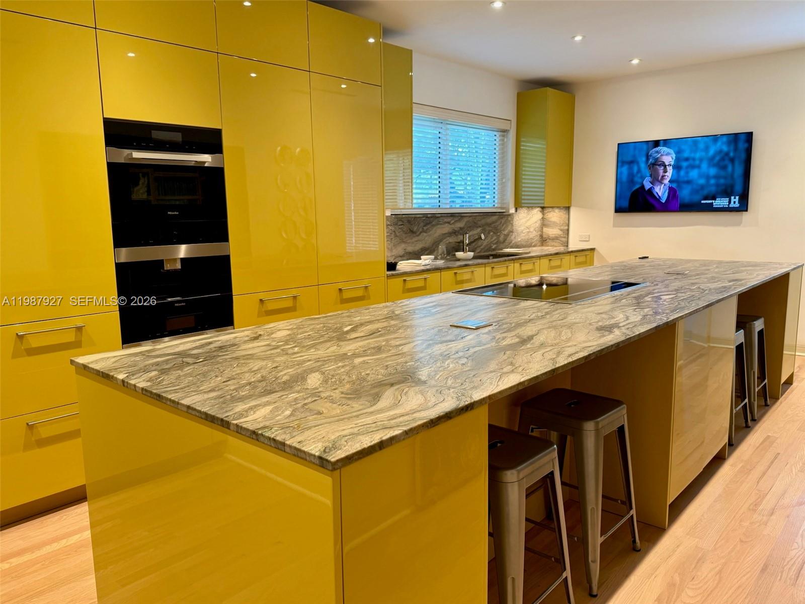 Welcome to Villa Moderne — a rare and iconic Streamline Moderne residence designed by renowned MiMo architect Manfred Ungaro and completed in 1949. Beautifully reimagined, this home blends architectural history with modern luxury. Situated on a prominent 11,300 SF corner lot, the residence offers 2,204 SF of living space, featuring 3 bedrooms, 3 bathrooms, and a powder room. Natural light fills every room through impact windows, highlighting elegant interiors, Red Oak hardwood floors, and a stunning dining room with signature seafoam terrazzo. The chef’s kitchen, recently showcased at the Coral Gables Tour of Kitchens, is both functional and refined, with Snaidero cabinetry, Miele appliances, and a generous pantry. A stylish wet bar discreetly conceals the laundry area, enhancing both design and practicality. Set on a quiet, tree-lined street, the property offers exceptional outdoor potential, including pre-approved plans for a pool and terrace—perfect for entertaining or relaxing in privacy. Ideally located just moments from Miracle Mile, fine dining, and top amenities, with convenient access to Miami International Airport. A distinctive residence where timeless design meets modern living.