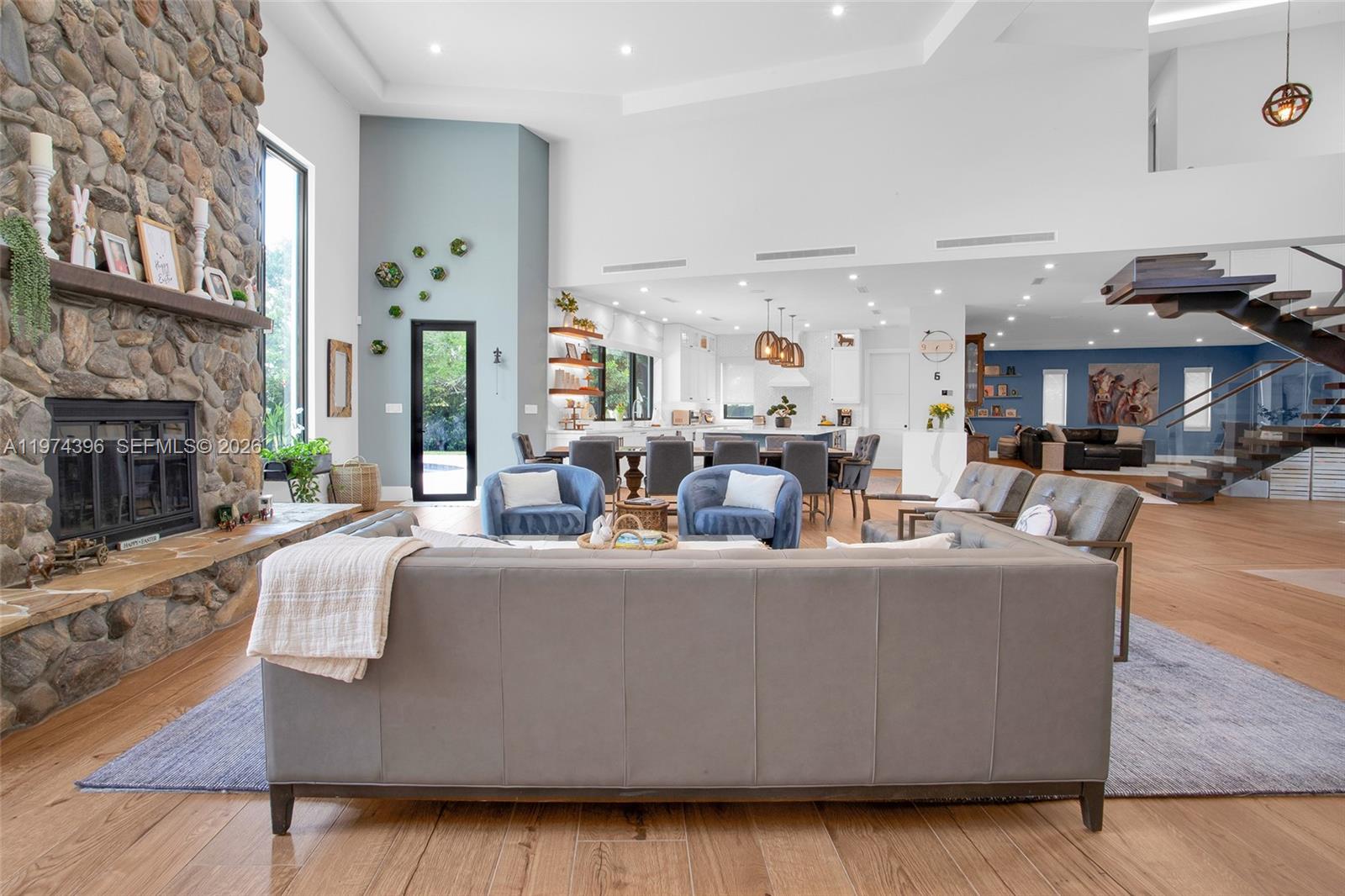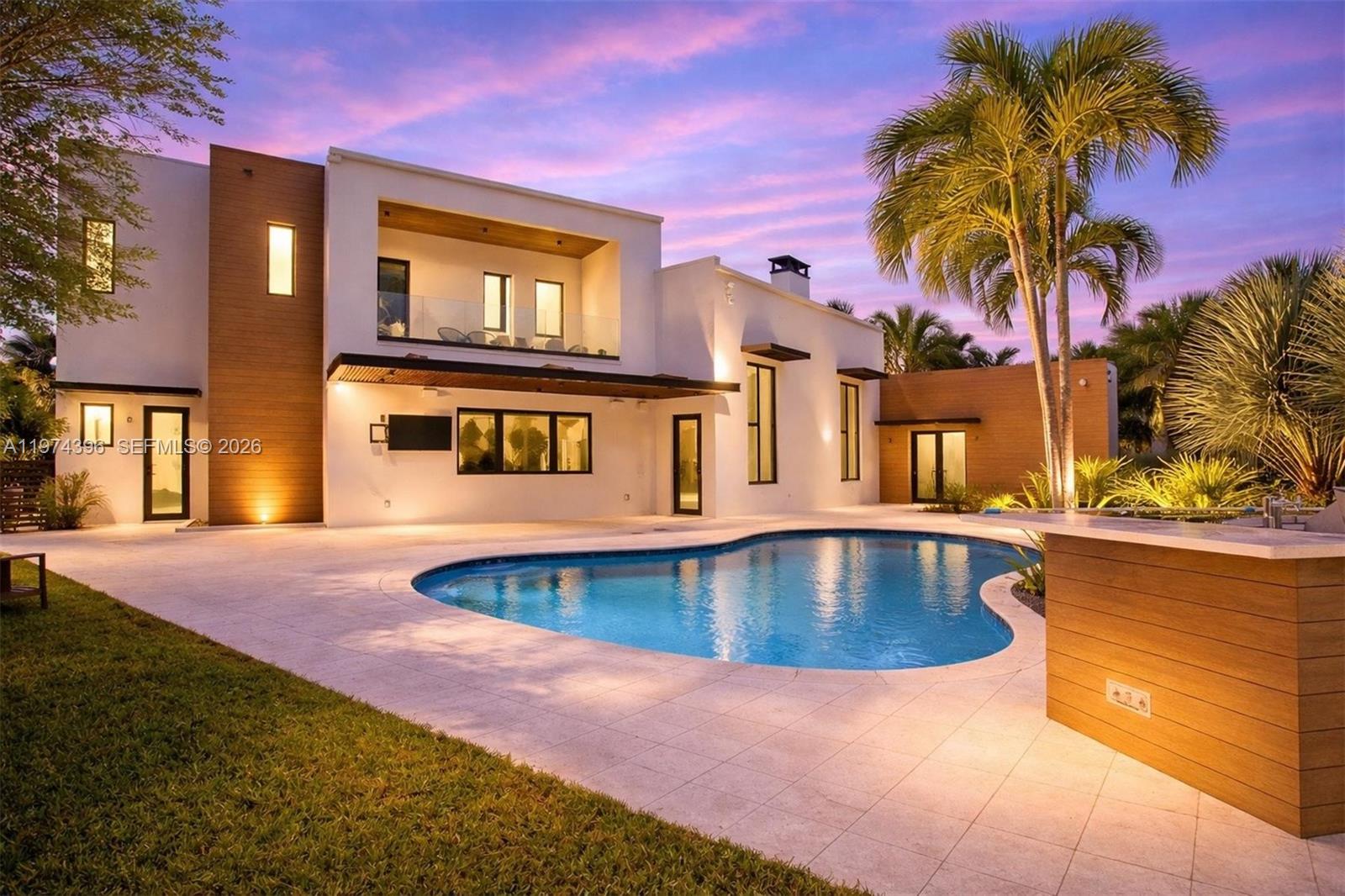 Welcome to a stunning Modern Transitional estate, fully remodeled in 2020, located in the prestigious Plantation Acres community. Set on a sprawling one-acre lot, this exceptional residence offers a rare blend of luxury, privacy, and refined South Florida living. Featuring five spacious bedrooms and four elegantly designed bathrooms, the home showcases impeccable craftsmanship and thoughtfully curated finishes throughout. The gourmet kitchen is outfitted with premium Gaggenau appliances, ideal for both everyday living and elevated entertaining. This residence is heavily influenced by advanced smart home technology, offering seamless control of lighting, climate, security, and more designed for ultimate convenience and modern sophistication. A comprehensive 360-degree perimeter security camera system provides enhanced privacy and peace of mind. The property is further elevated by a massive exterior lighting package that transforms the estate at night, accentuating the architecture and creating a true resort-style ambiance. Step outside to your private backyard retreat, complete with a saltwater pool overlooking tranquil canal views perfect for relaxing or hosting in a serene picturesque setting. Additional features include a equipped garage with electric vehicle(Tesla) charging capability, expansive indoor and outdoor living spaces, and the quiet charm of an equestrian-friendly neighborhood. Experience elevated living in one of Plantation most sought after communities.
