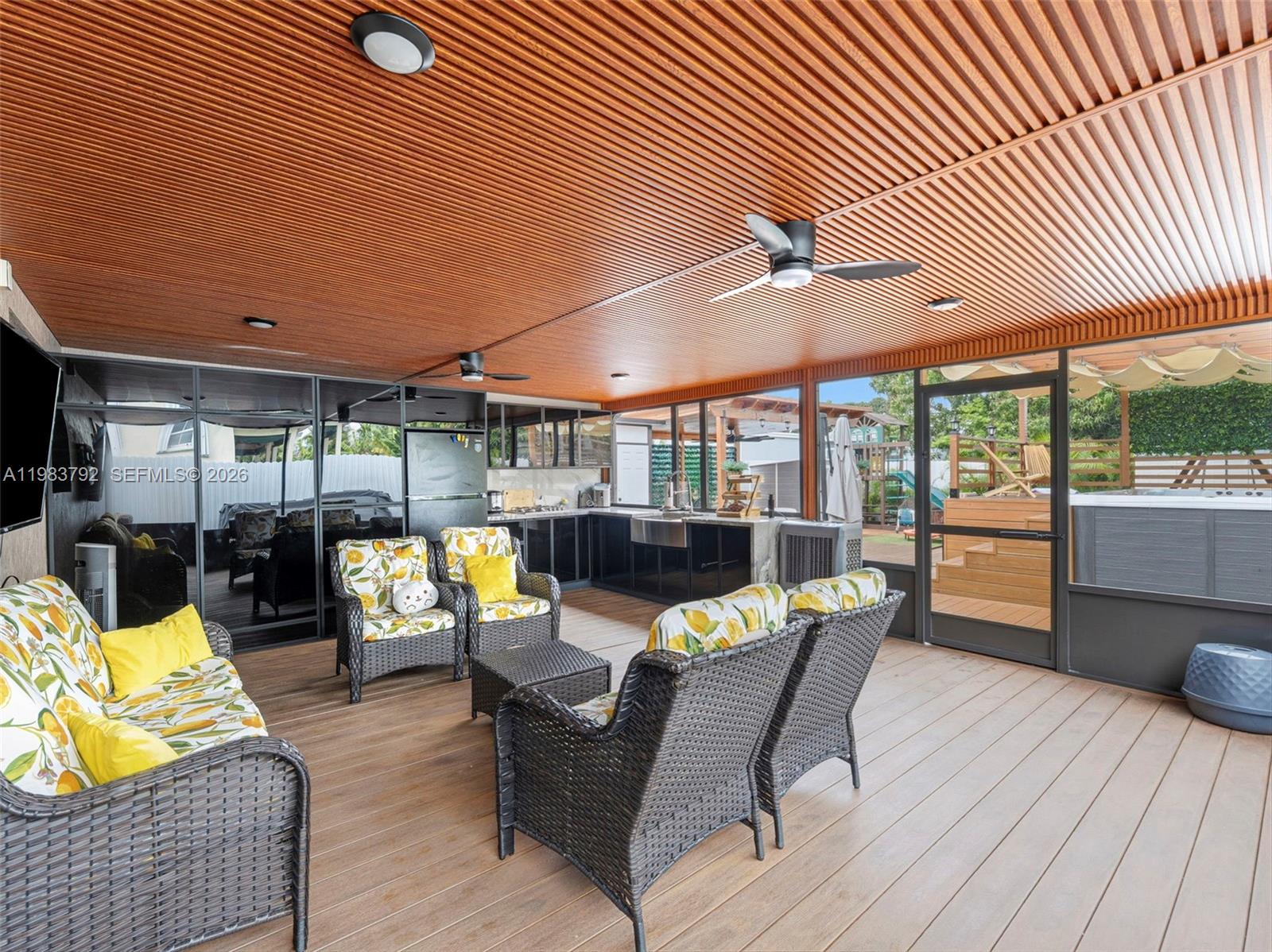 Welcome to this stunning 3/2 with pool, completely updated residence centrally located in the heart of Miami. This bright and spacious home offers a modern sanctuary with high-end finishes throughout, including elegant porcelain tile flooring and a gourmet kitchen featuring custom wood cabinetry, sleek quartz countertops, and premium stainless steel appliances with gold trimming. Designed for both safety and comfort, the property boasts full impact-resistant windows and doors, a brand-new A/C system, and a comprehensive alarm system for ultimate peace of mind. The versatile floor plan includes 3 generous bedrooms and 2 modern bathrooms, plus a functional den that flows seamlessly into an oversized covered terrace. This outdoor living space is a true entertainer’s dream, perfect for hosting family and friends year-round, and is complemented by a refreshing new above-ground heated spa/pool. Situated just minutes from vibrant local shops, diverse dining options, and major transportation hubs, this home offers the perfect balance of urban accessibility and private suburban comfort. Whether you are relaxing in the spacious interior or enjoying the South Florida sunshine in your private backyard, this move-in-ready gem represents a rare opportunity to own a fully modernized home in a prime location. Experience the best of Miami living in a home where every detail has been meticulously upgraded for the modern buyer.