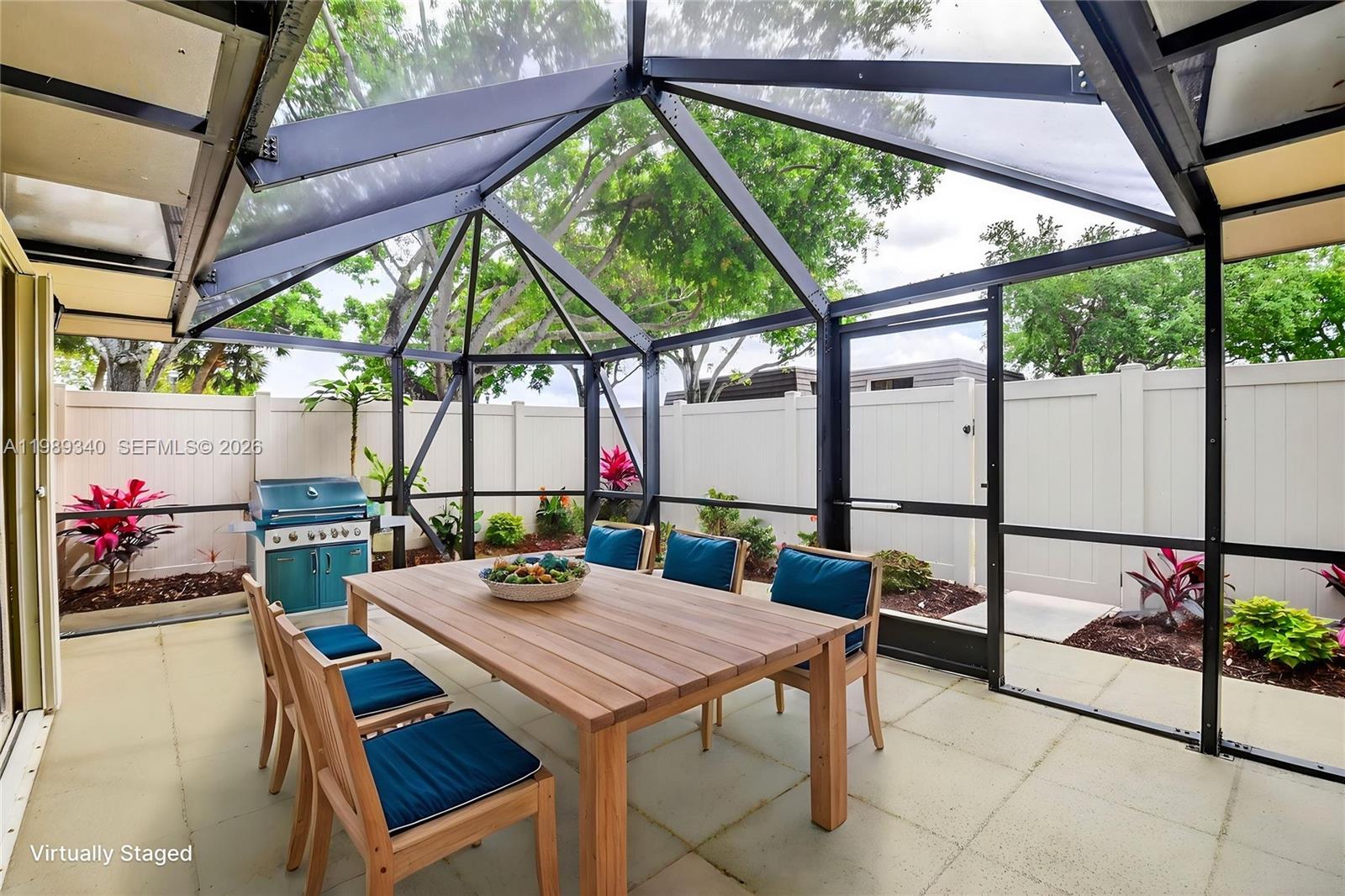 Welcome Home to this inviting & well-maintained townhome nestled in the heart of Heritage Village within the active Villages of Palm Beach Lakes POA community! What a value! Your low HOA fee of $501.15 not only includes internet (Blue Stream fiber), exterior insurance, roof repairs, landscaping, water/trash/sewer, community pool & more, you are also afforded exclusive resident access to 3 amazing Parks managed by the POA! Offering 3 Salt Water Pools, 3 Kiddie Pools, 8 Racket Ball Courts, 3 Sand Volley Ball Courts, 14 Tennis Courts, 2 Open Sports Fields, Bocce Ball Court, Picnic Tables, Grills, Jogging, Exercise Trails & Playgrounds! This home offers 2 spacious bedrooms upstairs with updated en-suite bathrooms, ample closet space & new private balconies. Featuring a functional layout with generous living area, under-stairs storage & a tastefully updated kitchen with stainless steel appliances. 2020 roof, Full accordion shutters & 2024 Trane AC for your peace of mind! Step outside to your private, screened-in large patio & new PVC-fenced courtyard—an ideal setting for relaxing, hosting, gardening & enjoying South Florida’s indoor-outdoor lifestyle in complete privacy. New Electrical risers, fences, balconies with Assessment paid by Seller! All of this, in a central West Palm Beach location, close to PBI airport, beaches, shopping, dining, major highways & everything the area has to offer. Lease immediately. Pet-friendly 1 under 30 pounds. 2 assigned parking spots, 2 cars only.