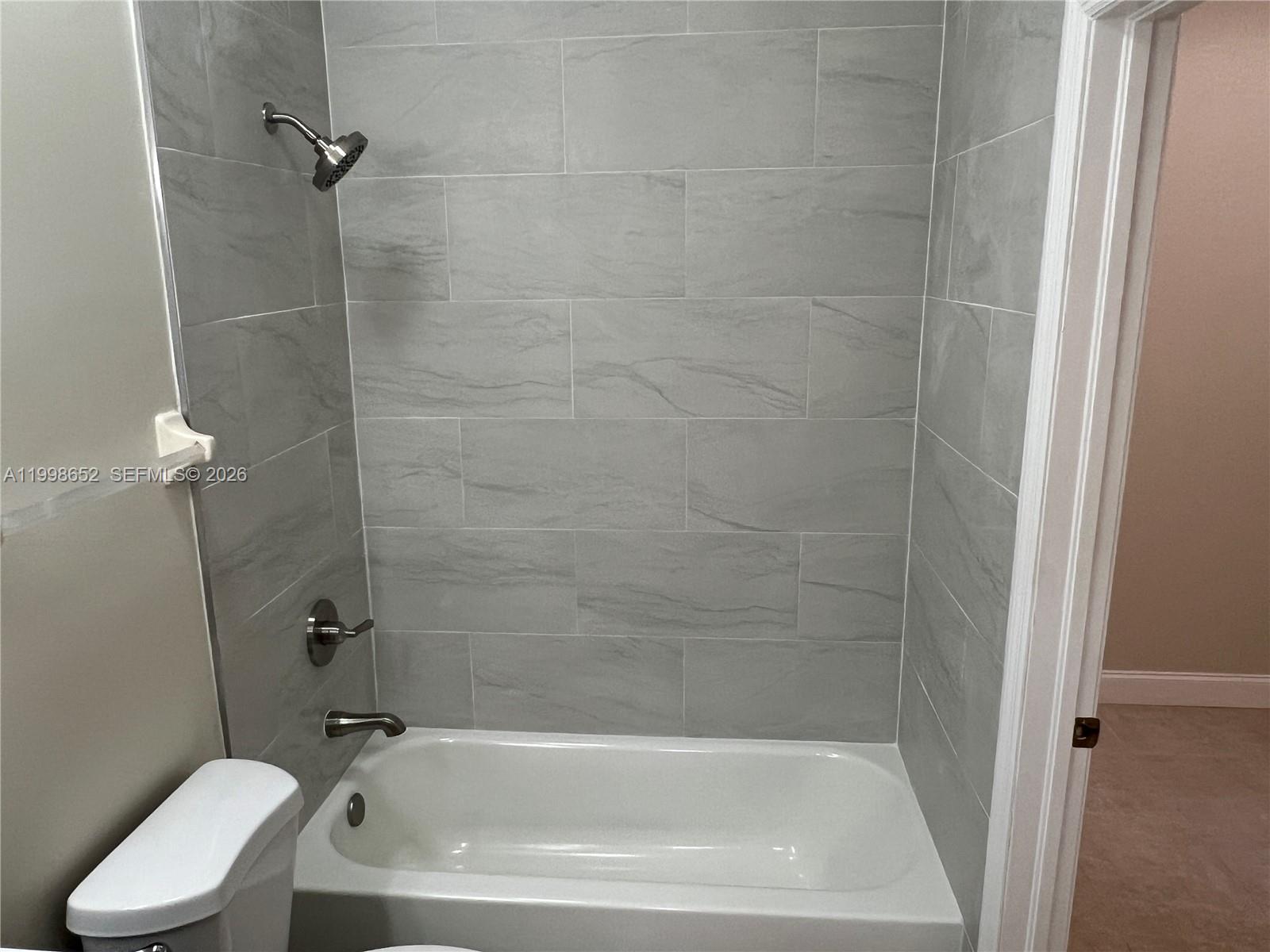 COMPLETELY REMODELED ONE-STORY TOWNHOUSE TO PERFECT CONDITION. THIS HOME HAS BEEN PROFESSIONALLY PAINTED THROUGHOUT IN A BEIGE COLOR WITH WHITE TRIMS. THERE ARE LARGE 16X16 TILES THROUGHOUT. THE FOYER ENTERS THE LIVING ROOM AREA WITH A HALLWAY TO THE LEFT LEADING TO THE FIRST BEDROOM AND THE JACK AND JILL BATHROOM WITH AN ACCESS DOOR COMING FROM THE SECOND BEDROOM. THE LIVING/DINING ROOM AREA IS SPACIOUS AND LEADS TO THE KITCHEN. THE MASTER BEDROOM AND THE SECOND BEDROOM ARE ALSO ACCESSIBLE FROM THE LIVING ROOM. THE NEWLY REMODELED KITCHEN HAS BEAUTIFUL, GRAY-COLORED SHAKER-STYLE CABINETS, QUARTZ COUNTERTOPS, AND ALL-NEW STAINLESS-STEEL APPLIANCES. THERE IS AN EAT-IN COUNTERTOP FOR FASTER FAMILY CLEANUP. THE LAUNDRY CLOSET IS IN THE KITCHEN WITH A STACK WASHER AND DRYER MACHINE. SLIDING GLASS DOORS LEAD TO THE BEAUTIFUL PATIO WITH BRAND NEW ARTIFICIAL GRASS THAT WAS PROFESSIONALLY INSTALLED FOR EASY MAINTENANCE. THE MASTER BEDROOM FACES THE BACK AND IS LARGE AND SPACIOUS. IT HAS A WALK-IN CLOSET AND A MASTER BATHROOM THAT WAS COMPLETELY REMODELED WITH THE SAME CABINETS AS THE KITCHEN. THE HALLWAY BATHROOM WAS ALSO REMODELED IN THE SAME STYLE. THERE ARE STAINLESS-STEEL LIGHT FIXTURES THROUGHOUT. ALL THE WINDOWS HAVE NEW BLINDS AND ARE PROTECTED BY ACCORDION HURRICANE SHUTTERS. FIND THE YOUTUBE VIDEO WITH THE MLS NUMBER.