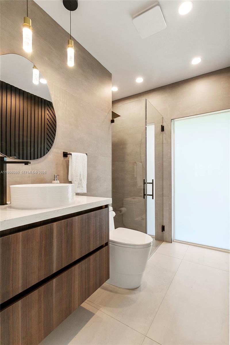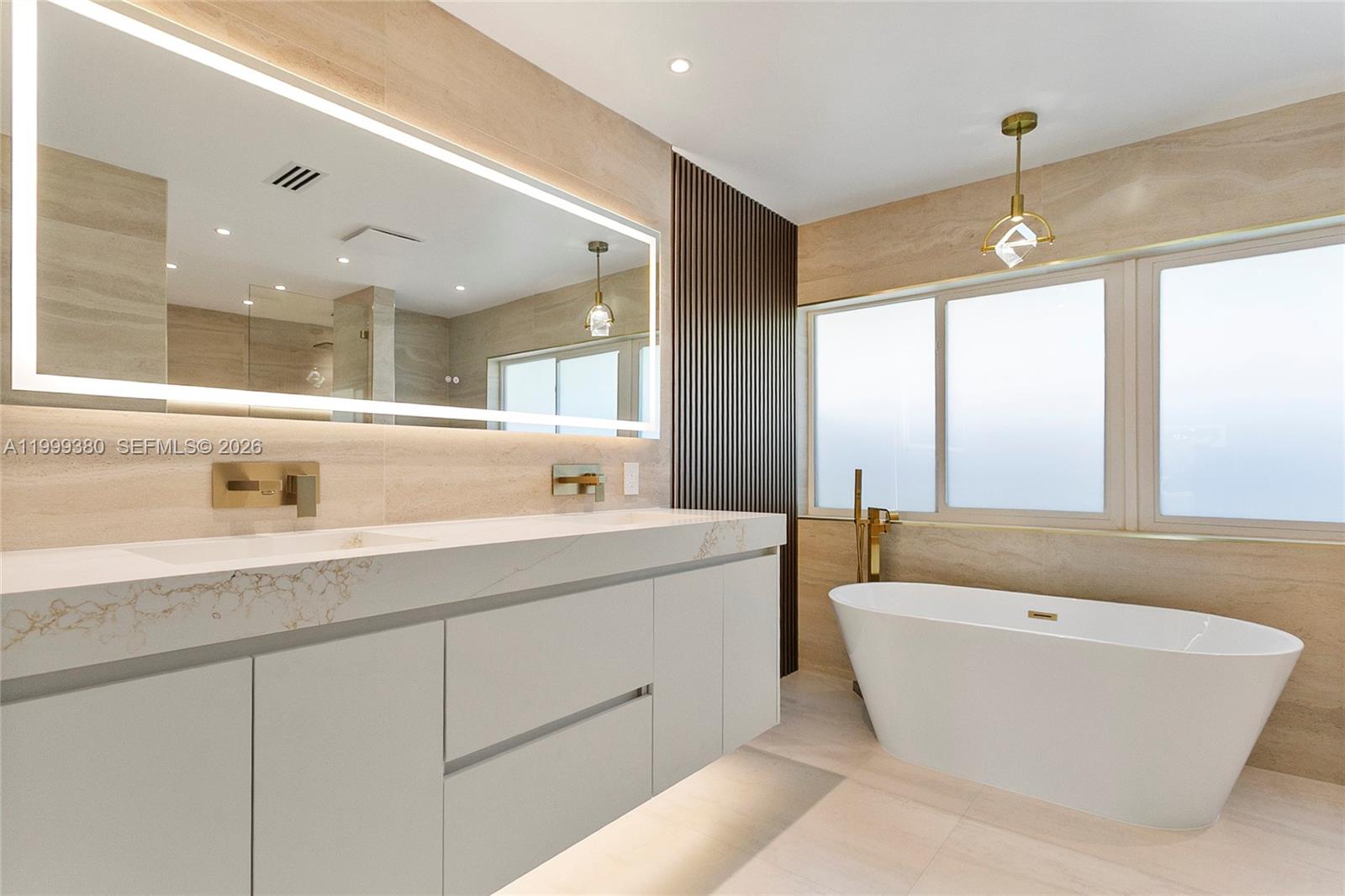 Step into luxury with this stunning, fully upgraded waterfront residence, where modern design meets cutting-edge smart living. Turnkey home, freshly painted inside and out, offering elegance, comfort, and innovation—enhanced by beautifully updated landscaping, a two-car garage, and breathtaking water and golf course views in the rear. Rectified Italian porcelain tile flooring throughout, completely renovated home. State-of-the-art chef’s kitchen, with custom cabinetry, striking quartz waterfall countertops, and brand-new 2024 appliances. Beautiful chimney. Impact windows throughout, a 2023 foam-insulated attic, a 2023 water heater, and a high-performance HVAC system. Fully equipped smart lighting system, smart sprinkler control panel, smart pool controls, and a unified security system for ultimate convenience and security. Primary suite features a large bedroom, custom walk-in closets, beautifully remodeled, modern-designed bathrooms with high-end finishes. Spacious second bedroom with walk-in closets. Additional upgrades include new interior doors, renovated laundry room with cabinetry, designer lighting fixtures and window treatments. Wine enthusiasts will love the climate-controlled, state-of-the-art wine cellar. Outdoor living with a pool, new outdoor cooktop, and water and golf course views. This residence offers the ultimate in luxury, technology, and lifestyle. A rare waterfront and golf course view opportunity—schedule your private showing today.
