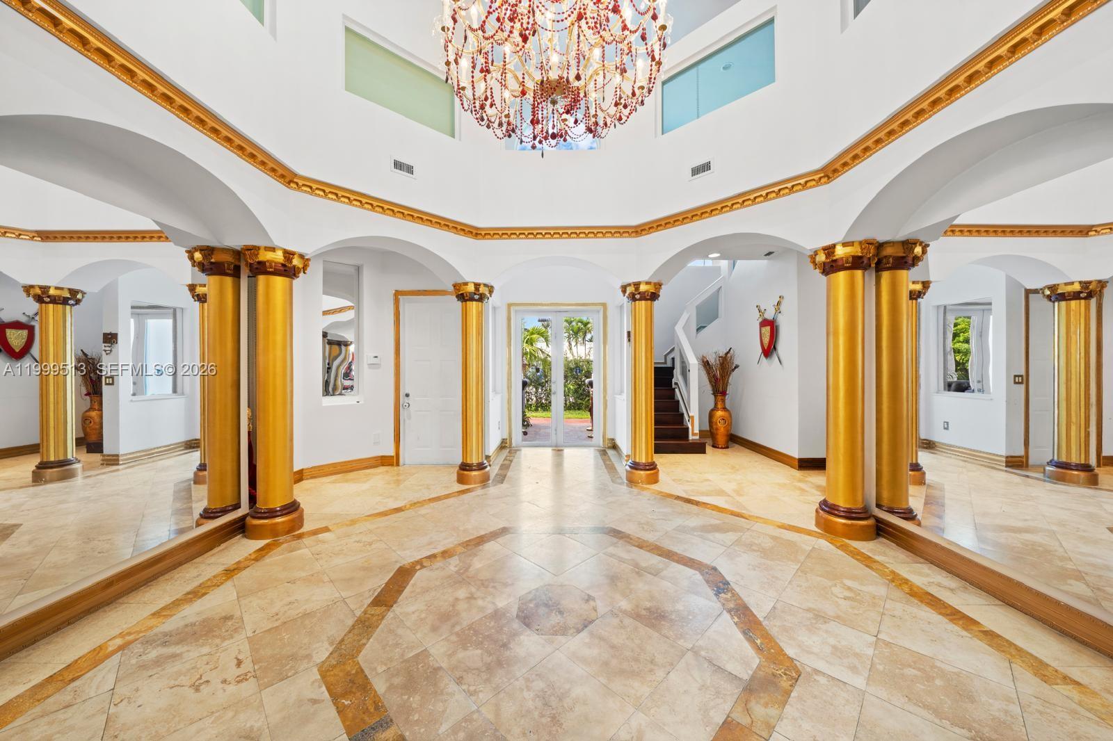 Welcome to this exquisite Mediterranean estate, where elegance meets comfort in a thoughtfully designed 5-bedroom, 4-bath residence featuring two luxurious primary suites. From the moment you enter, you’re greeted by soaring vaulted triple tray ceilings and gleaming marble floors that set the tone for refined living. The heart of the home is a chef-inspired gourmet kitchen, complete with double ovens and an oversized island, seamlessly flowing into formal dining and expansive living areas—perfect for entertaining or relaxed everyday living. The primary suite is a private retreat, showcasing a spa-like bathroom with a Jacuzzi tub, dual-head shower, bidet, and two generous walk-in closets. Step outside to your own oasis—a spacious balcony overlooking a beautifully designed pool and spa, ideal for enjoying serene mornings or sunset evenings. Perfectly combining location, convenience, and lifestyle, this exceptional property is truly a standout in a highly desirable setting. Just steps from the renowned Diplomat Golf Course and conveniently located near a variety of dining and shopping options, including the vibrant Gulfstream Park. Enjoy the perfect blend of leisure and accessibility right at your doorstep.