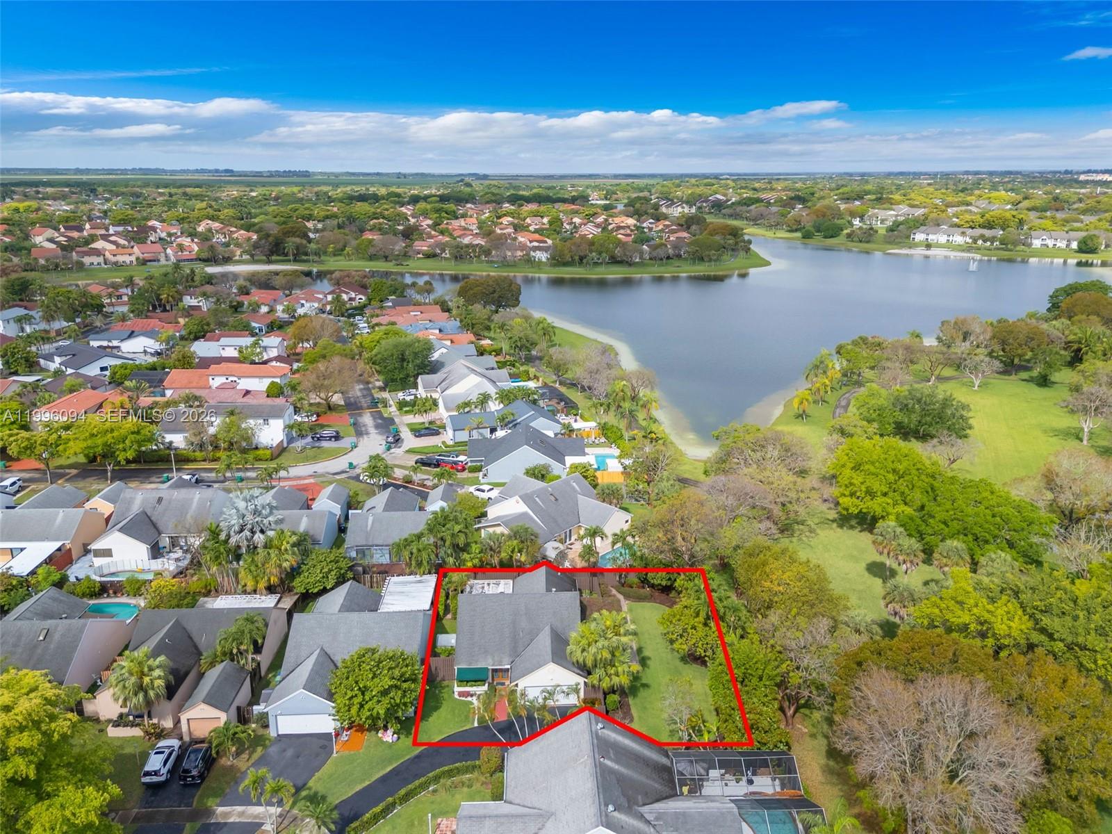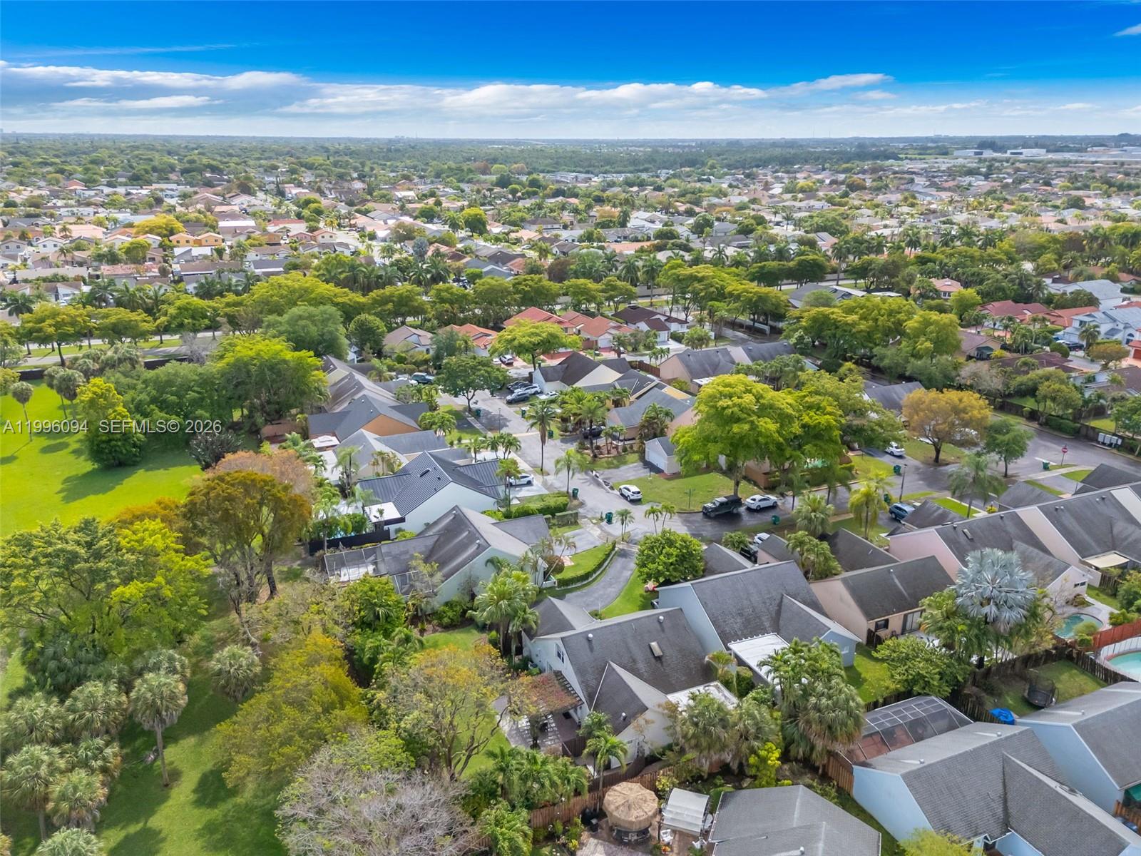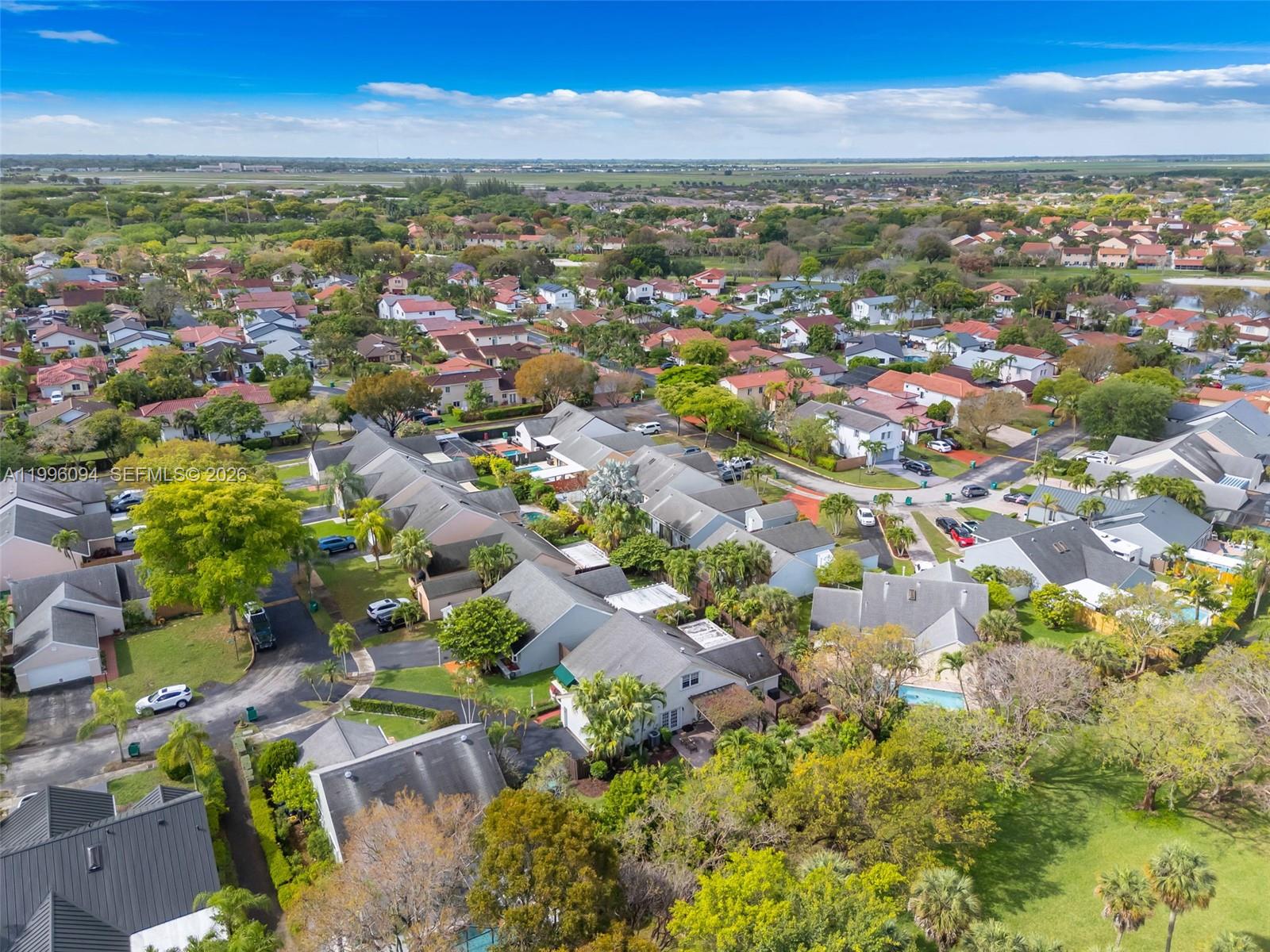 Welcome to one of Chantarelle Ravena's most coveted lots, a sprawling 10,000+ sq ft property where well-kept Spanish tile flows throughout, anchoring the home with warmth and timeless character. The flexible floor plan includes the primary suite, a second bedroom, and two full bathrooms on the main floor for effortless daily living, while the upper level adds a third bedroom and full bath, ideal for guests or a quiet home office. A dedicated media room (once the fourth bedroom) rounds out the home's versatility while adding natural light to the downstairs living space. The two-car garage features built-in overhead storage, and thanks to excellent insulation, all areas of the home stay comfortable year-round, even through South Florida summers. Step outside and the real magic begins. The beautifully landscaped backyard offers extensive yard space with more than enough room for a private pool. A remarkable collection of tropical fruit trees lines the property including banana, mango, lemon, lime, lychee and more, a true South Florida paradise just steps from your kitchen. The private back gate opens directly onto the Hammocks' famous lakeside walking path, putting one of Kendall's most beloved outdoor amenities right at your doorstep. Don't miss the chance to secure this rarely available 10,000+ sq ft lot in Chantarelle Ravena.