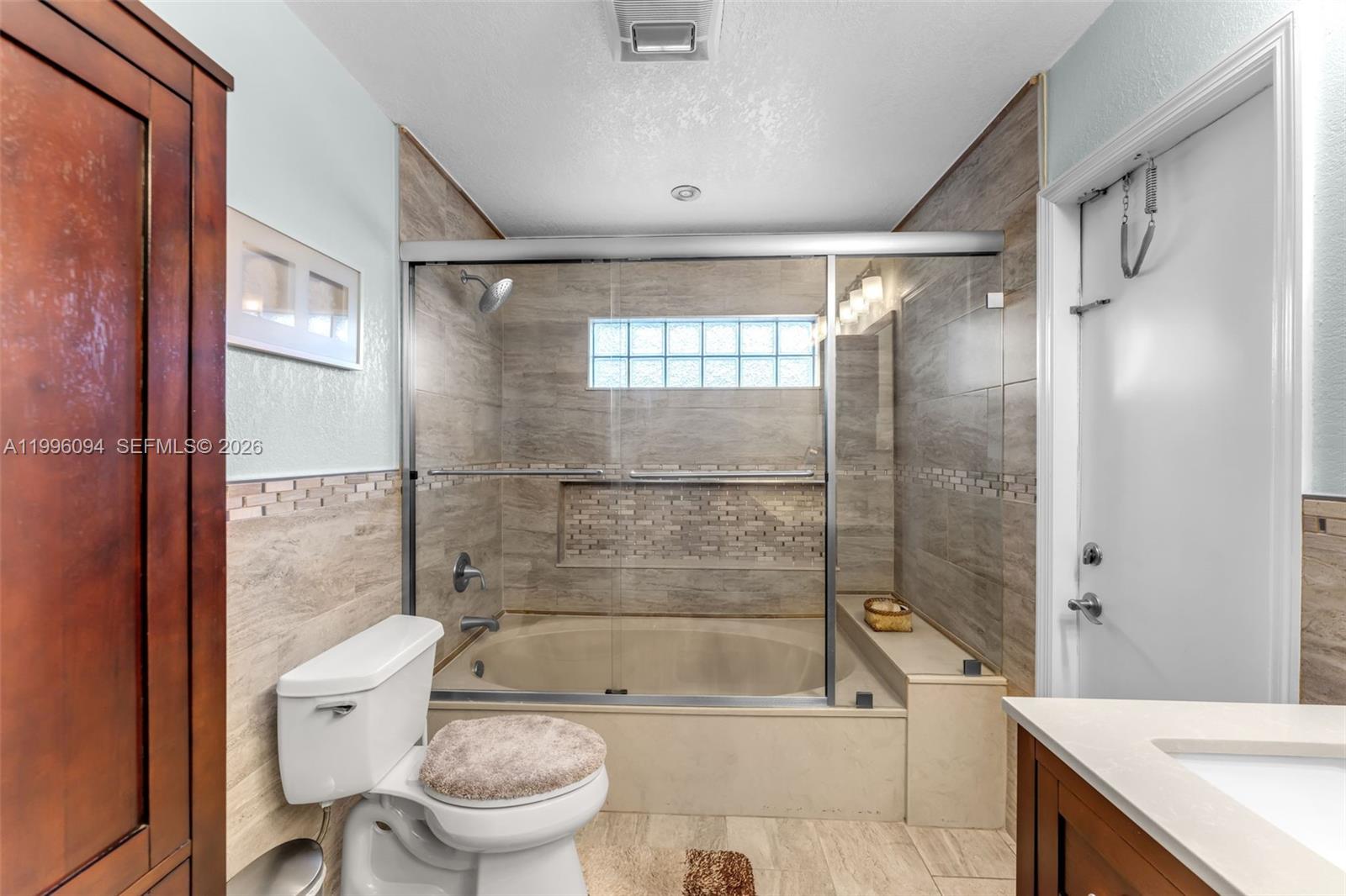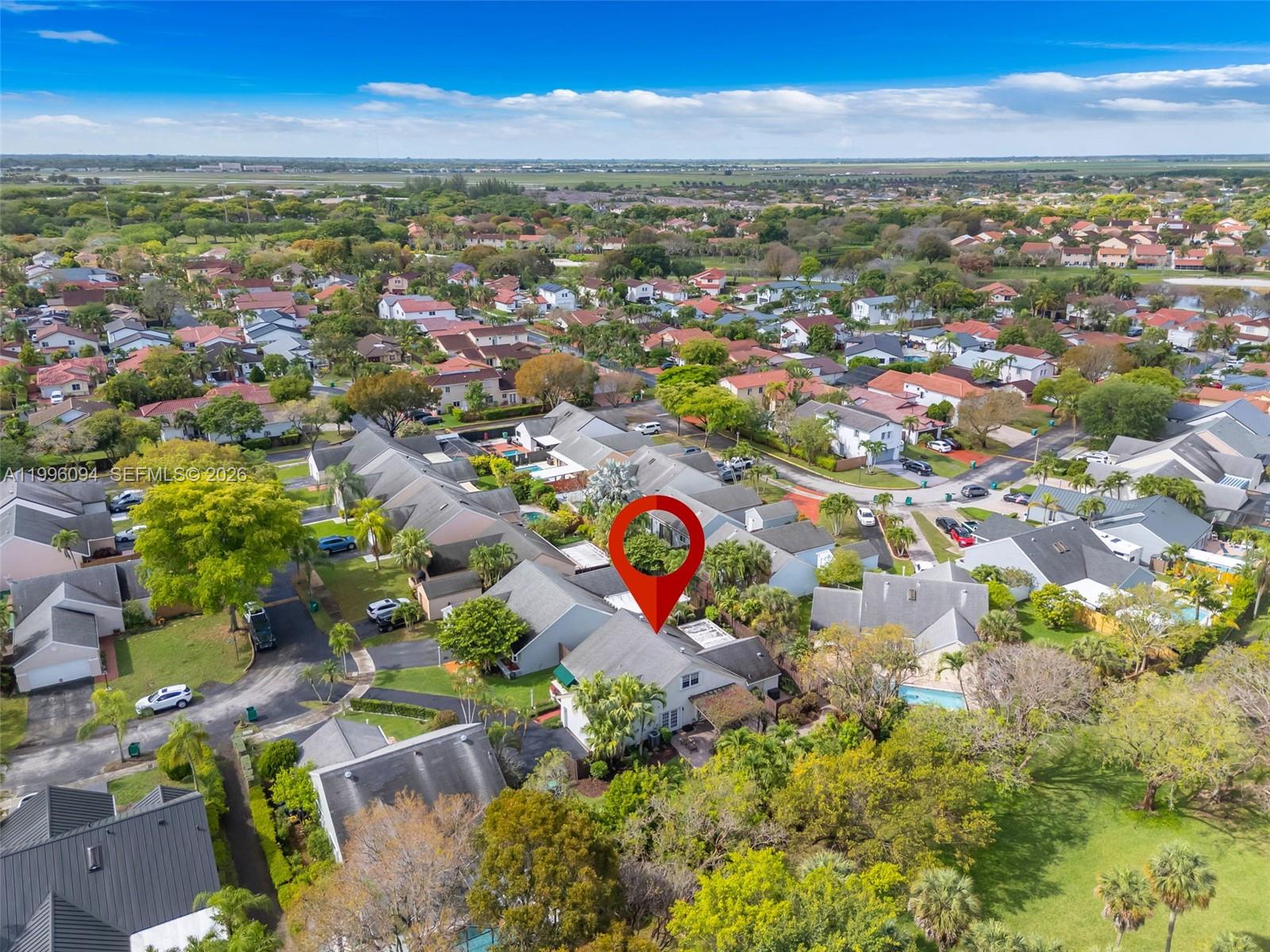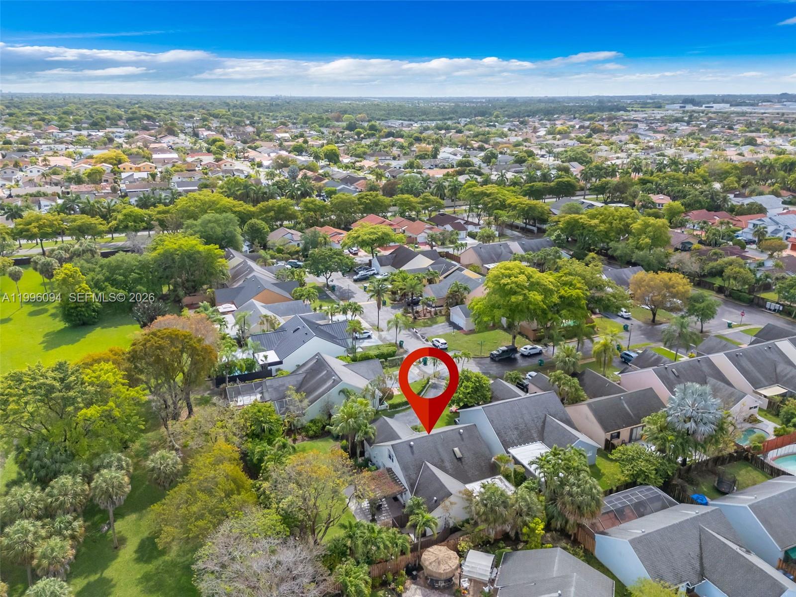 Welcome to one of Chantarelle Ravena's most coveted lots, a sprawling 10,000+ sq ft property where well-kept Spanish tile flows throughout, anchoring the home with warmth and timeless character. The flexible floor plan includes the primary suite, a second bedroom, and two full bathrooms on the main floor for effortless daily living, while the upper level adds a third bedroom and full bath, ideal for guests or a quiet home office. A dedicated media room (once the fourth bedroom) rounds out the home's versatility while adding natural light to the downstairs living space. The two-car garage features built-in overhead storage, and thanks to excellent insulation, all areas of the home stay comfortable year-round, even through South Florida summers. Step outside and the real magic begins. The beautifully landscaped backyard offers extensive yard space with more than enough room for a private pool. A remarkable collection of tropical fruit trees lines the property including banana, mango, lemon, lime, lychee and more, a true South Florida paradise just steps from your kitchen. The private back gate opens directly onto the Hammocks' famous lakeside walking path, putting one of Kendall's most beloved outdoor amenities right at your doorstep. Don't miss the chance to secure this rarely available 10,000+ sq ft lot in Chantarelle Ravena.