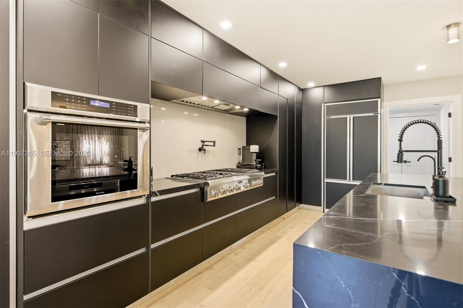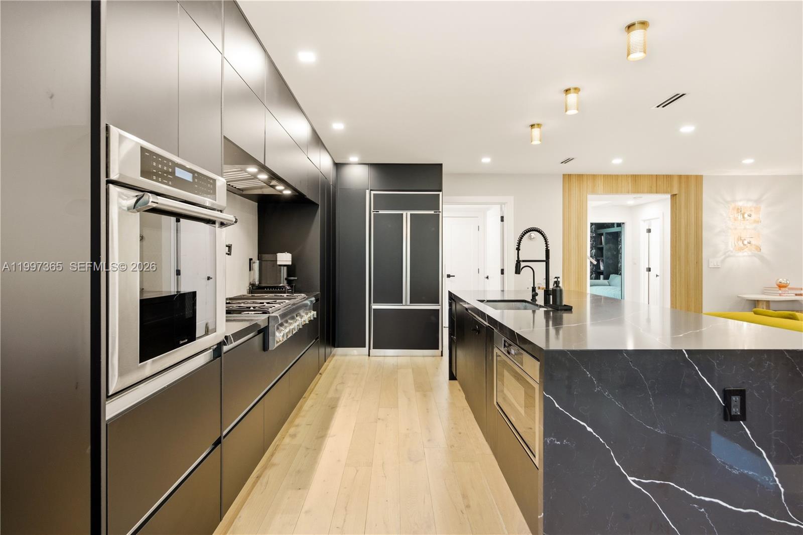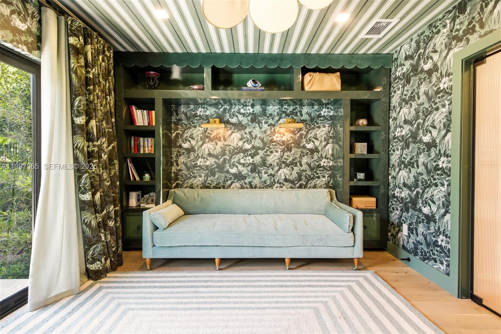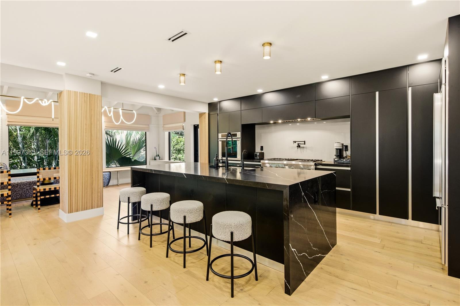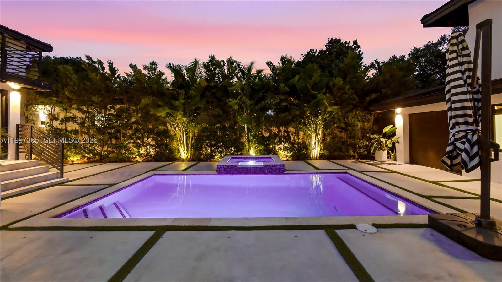 A masterfully reimagined Spanish Mediterranean compound where timeless architecture meets bespoke modern design.Set within a private, lushly landscaped setting, this residence offers nearly 3,000 SF of refined living space, including a 4-bedroom, 3-bath main home and a detached two-story guest house 569 sqft living area.The first level has been thoughtfully redesigned by Miami-based Moniomi designers, featuring custom millwork, curated finishes, and light-filled open living spaces. A built-in dining banquette and elegantly composed interiors flow into a chef’s kitchen centered around an oversized island and outfitted with professional-grade Thermador appliances.Upstairs, private quarters continue the elevated design with refined finishes and premium fixtures, including Toto toilets.Offered fully furnished with high-end designer pieces, the home delivers a seamless turnkey experience.The detached guest house includes its own kitchen, living area, full bath, and private upstairs bedroom—ideal for guests, a home office, or income-producing use.Outdoors, mature tropical landscaping surrounds a sleek pool and spa, with fully gated grounds creating a private, resort-like setting.A rare opportunity to own a design-forward, fully furnished compound defined by craftsmanship, privacy, and versatility.
