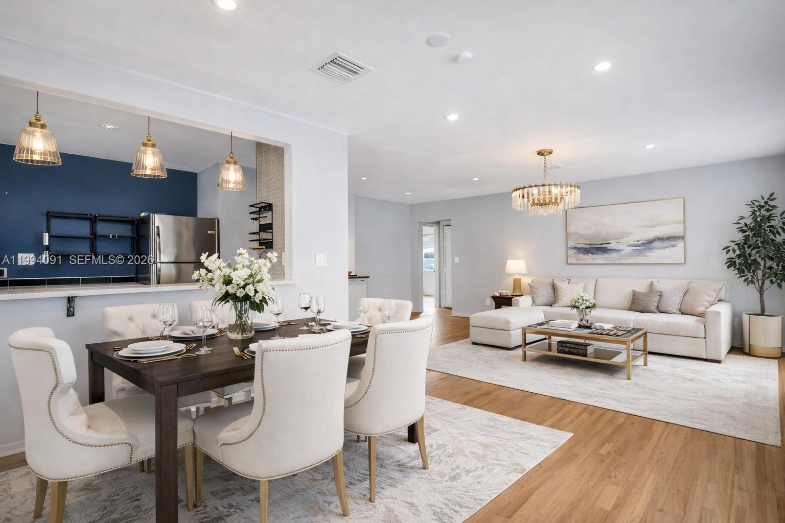 Charming 2-bedroom, 2-bathroom home in the heart of Hollywood! This beautifully maintained property features wood flooring throughout and a bright, open-concept layout with a spacious kitchen that flows seamlessly into the dining and living areas—perfect for everyday living and entertaining. The brand new updated kitchen offers stainless steel appliances and a modern feel, while the large bedrooms provide comfort and space. Both bathrooms have been tastefully updated. Enjoy the convenience of a one-car garage and a spacious backyard ideal for relaxing or hosting guests. Ideally located just minutes from shopping, dining, and the beach—this home truly has it all!