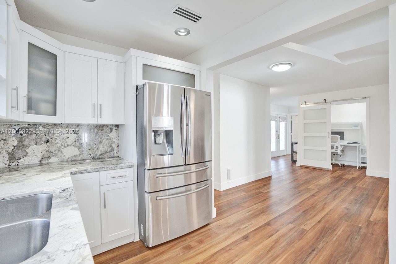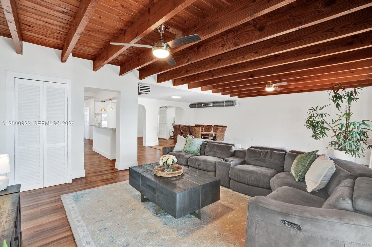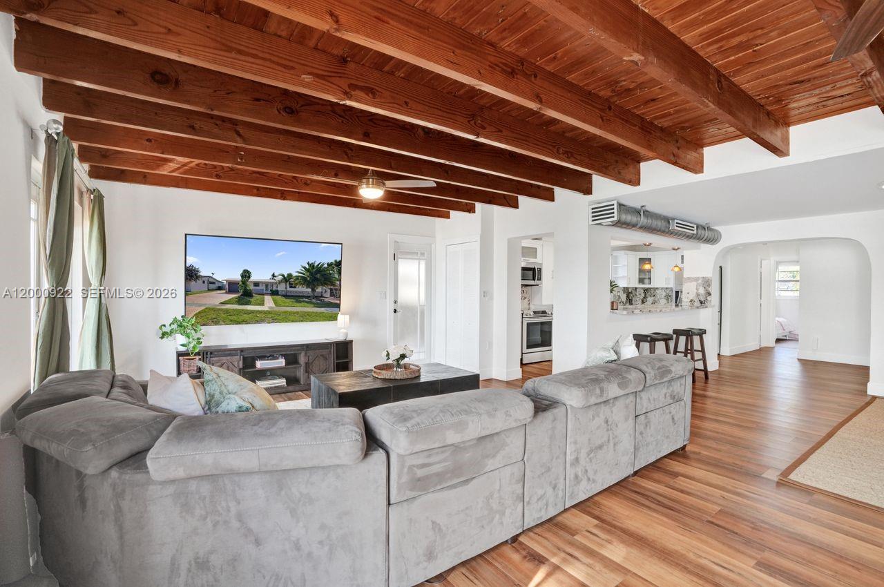 Stunning lakefront views set the stage for this well-cared-for 3-bedroom, 2-bathroom home with a dedicated office, located in the sought-after neighborhood Palm Springs North. An attached unfinished in-law suite addition offers a great opportunity to expand and make the space your own. The home features an updated kitchen and vinyl flooring (2020), along with new baseboards, crown molding, fresh interior and exterior paint, modern lighting, and upgraded insulation (2026). A metal roof (2020) adds long-term durability and value. Step outside to your breezy waterfront escape, complete with a private dock, boat ramp and lift, tiki hut, sandy beach area, and fire pit; ideal for entertaining or unwinding. Enjoy direct access to a lake that allows motorized boats and jet skis. Ideally located near I-75 and the Florida Turnpike, this home offers both comfort and convenience.