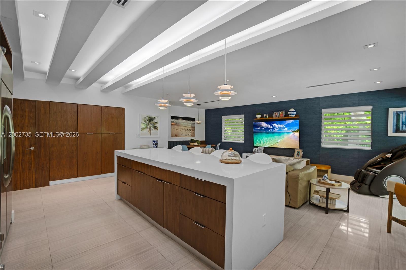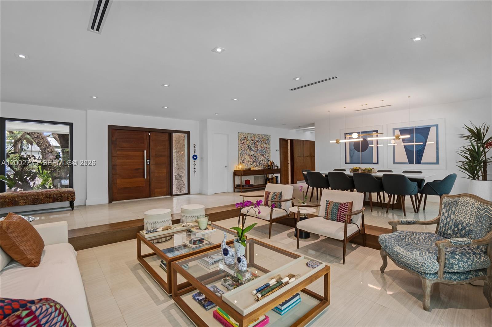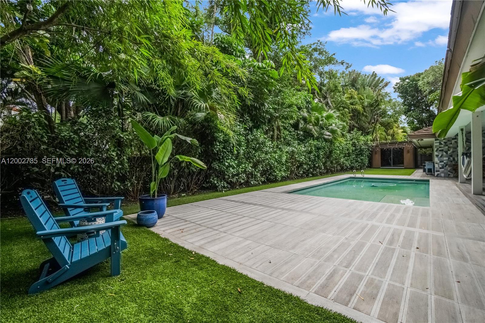 Exquisitely designed and fully upgraded 5-bedroom, 4.5-bath residence located on a quiet cul-de-sac in the highly sought-after Skylake area. This one-story home offers a refined living experience, combining sophisticated design, expansive spaces, and exceptional attention to detail. Thoughtfully curated and beautifully decorated, the home showcases a seamless flow between indoor and outdoor living, with generous living areas, high-end finishes, and a modern kitchen equipped with stainless steel appliances and gas connection. The outdoor setting is truly remarkable, featuring lush, mature landscaping that creates a private, serene, resort-like atmosphere surrounding a stunning infinity-edge pool—ideal for both relaxation and entertaining. A standout feature of the property is a fully equipped, custom-built gym, designed for a complete wellness experience within the comfort of your own home. Additional highlights include impact windows and doors, generator, maid’s quarters, electric vehicle charging station, and a spacious driveway accommodating multiple vehicles. A rare opportunity to own a move-in ready, design-forward home offering privacy, comfort, and elevated living in one of the area’s most desirable neighborhoods.