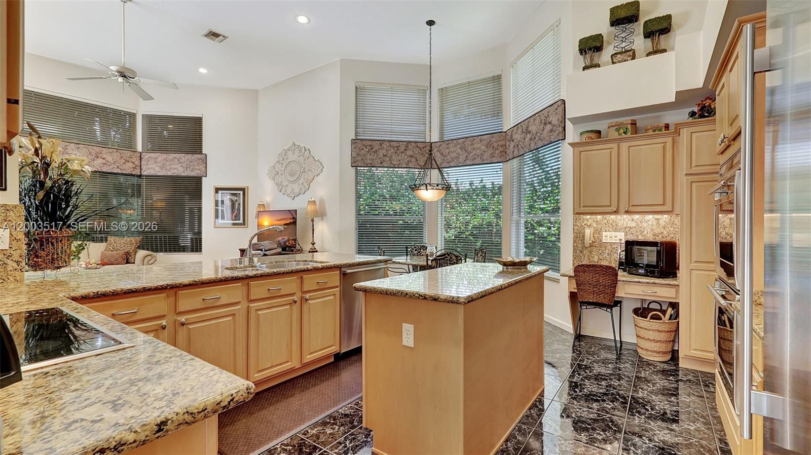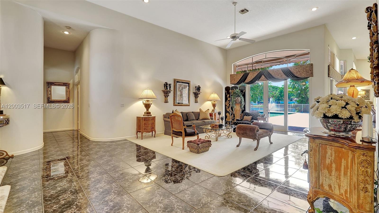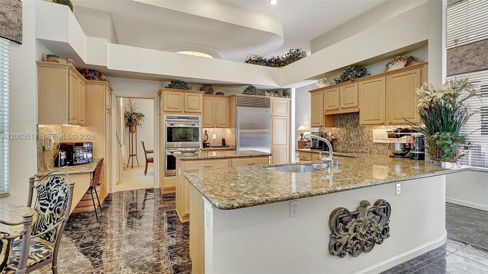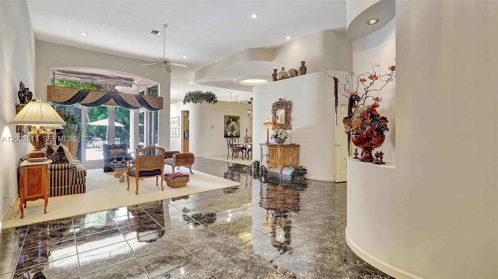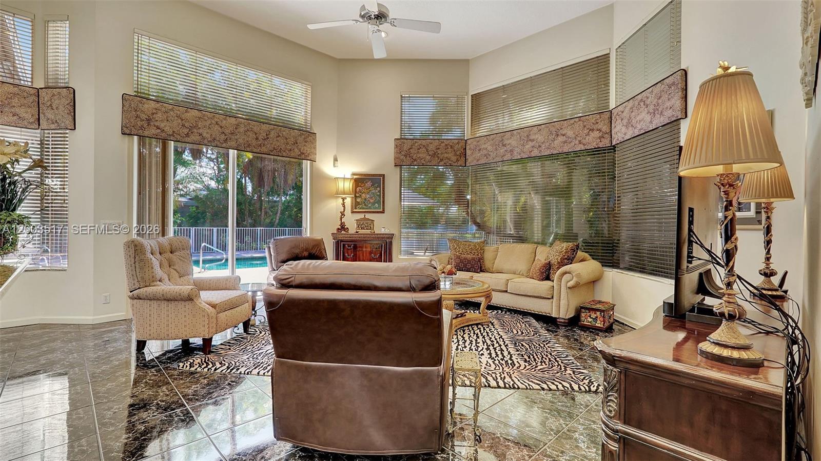 Welcome to 681 NW 100th Terrace, a Rarely Available 1 story Residence in the Exclusive Private Guard Gated Plantation Palms on an oversized 14,000+ sq ft lot w/14 ft Ceilings & View of the Pool, Lake & fountain greet you. You will love this split Floor plan, lots of windows & natural light, Large Granite & wood eat-in Island Kitchen w/ New Sub Zero Fridge, Wolf Oven/cooktop, Miele Dishwasher & breakfast area which opens to the family room. Formal Dining & Living Room, Laundry Room w/ side by side washer & dryer & sink. Primary Suite is large w/ Oversize Vanity w/ dual sinks, separate whirlpool tub & shower, 2 Walk in closets, Plantation Shutters. 2nd Bed is en-suite. 3rd & 4th Beds share hall bath. 2 NEWER AC'S (Master BR Late 2024, FR 2017) and 4 new Electrical Panels inside & out (late 2023), New Water heater (2026). Your backyard is a true oasis w/privacy, pool/lake view, covered patio w/ Viking Grill & Fridge. Great central location in Plantation surrounded by shopping, fine dining, I-595, Turnpike, American Heritage Private School and more.