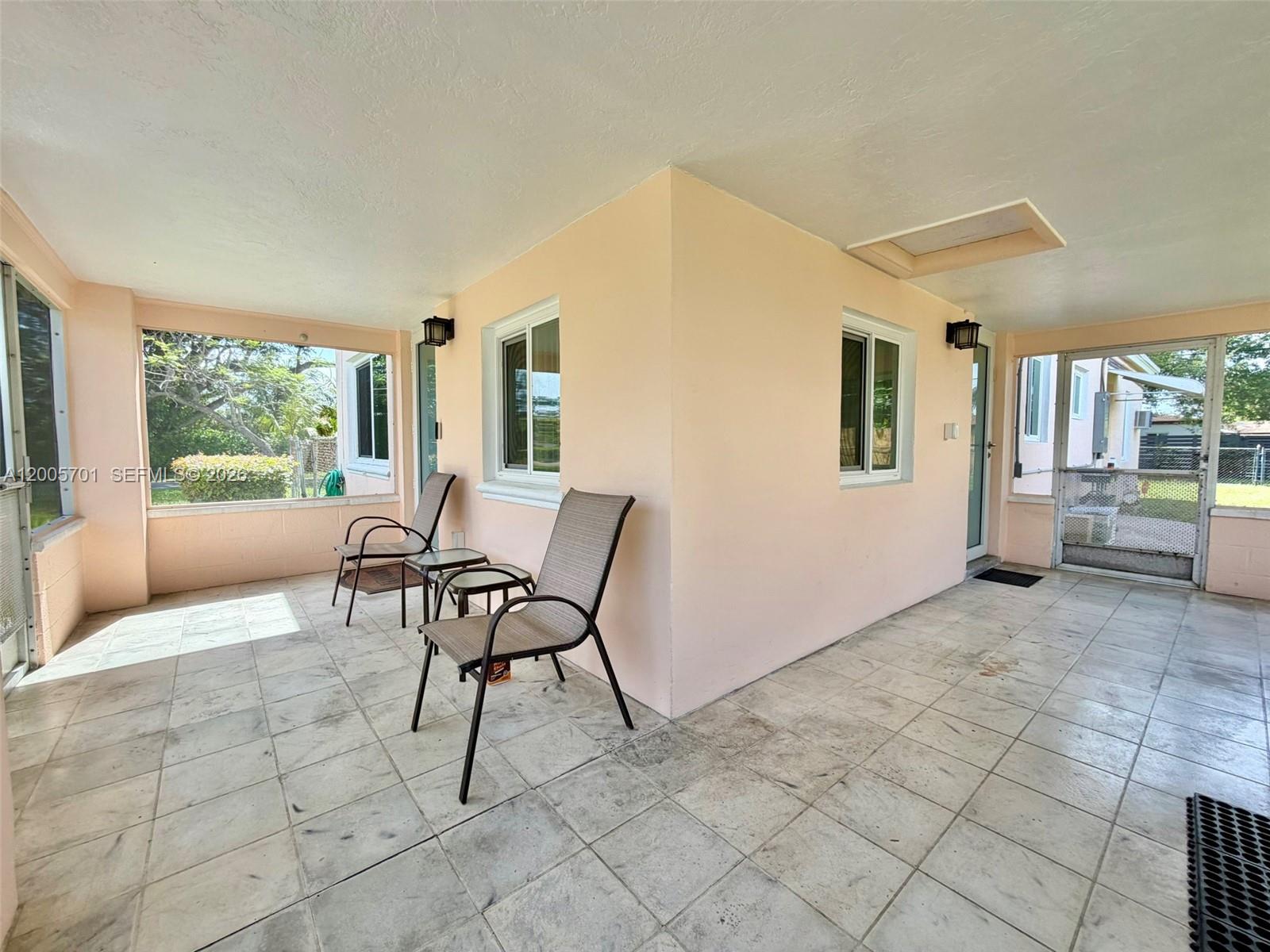 Well-maintained single-story 3-bedroom, 2-bath home in North Miami Beach, owned and cared for by a long-time owner, situated on an oversized corner lot with a fenced yard and room for a pool. This property features a large L-shaped screened porch perfect for outdoor living, a primary suite with a spacious walk-in closet and remodeled bathroom, and a functional kitchen with a stainless steel refrigerator and glass-top electric oven. Key updates include a new roof (2017), solar panels for energy efficiency, hurricane impact windows and doors, an upgraded electrical system, and a tankless hot water system. Additional highlights include a dedicated laundry room with full-size washer and dryer and the added benefit of no flood insurance required. A solid home with great bones, offering comfort, space, and potential in a desirable location.