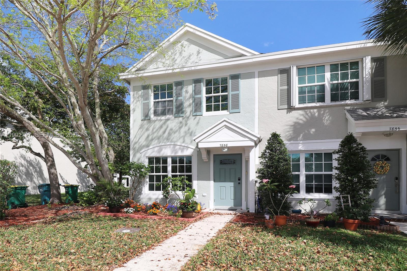 Fully remodeled 2-bedroom, 1.5-bath corner townhome with a beautiful garden view in a quiet community. Impact windows and stylish updated finishes throughout. Enjoy a screened-in patio with additional storage • Easy to show • Community offers great amenities including pool, tennis, basketball, volleyball, gym, and kids play area. HOA includes roof maintenance • Conveniently located near Sawgrass Mall, major highways, shopping, and restaurants. • Video Tour Available