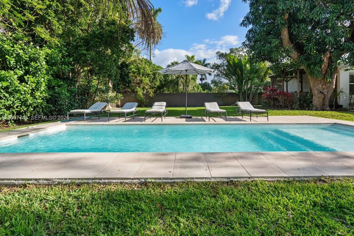 Welcome to this completely updated Biscayne Park pool home, perfectly designed for effortless indoor-outdoor living and entertaining. The thoughtfully re imagined layout features an upgraded kitchen that opens seamlessly to a spacious living area, formal dining room, and an expansive media room with double French doors. Step outside to a serene screened aviary-style porch with a cozy seating area, overlooking a large entertainment deck and lush, garden-filled backyard anchored by a mature mango tree. A brand-new pool and generous green space provide the perfect setting for relaxation, play, and hosting. The split-bedroom floor plan offers ideal privacy, while upgrades include impact windows and doors, newer A/C, newer septic system, A/C laundry room, and a full garage. Positioned on the same power grid as City Hall and the Police Station for added reliability. Located in the heart of “The Park” on a picturesque, tree-lined median street, this home offers a walkable, family-friendly lifestyle close to Miami Country Day School, as well as top dining and shopping. Move-in ready and truly turnkey—experience the charm and magic of Garden Grove living.