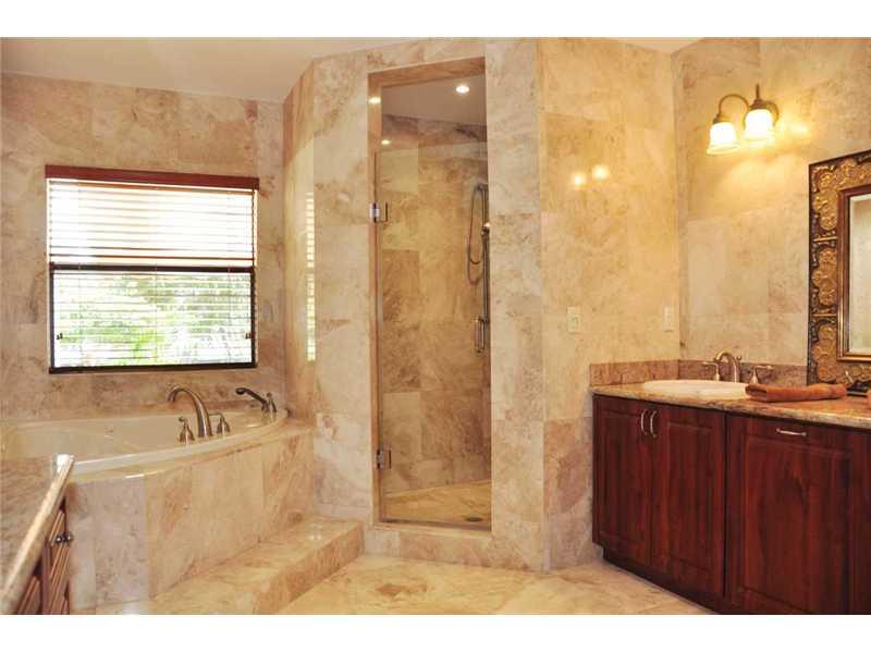 Sophisticated and completely remodeled 4 bed/3 bath waterfront home w/ocean access & no fixed bridges. Cathedral ceiling & columns in entry. Marble floors. Updated kitchen w/wood cabinets,granite countertops stainless steel appliances. Master suite w/sit ting area,walk-in California closet--Jacuzzi, massage shower, bidet, alabaster double sink in bath. Roof, plumbing & electric renovated in 2006. Generator. 2 car garage. Impact windows. 2 of each: central A/C units,water heaters & new docks. New seawall.