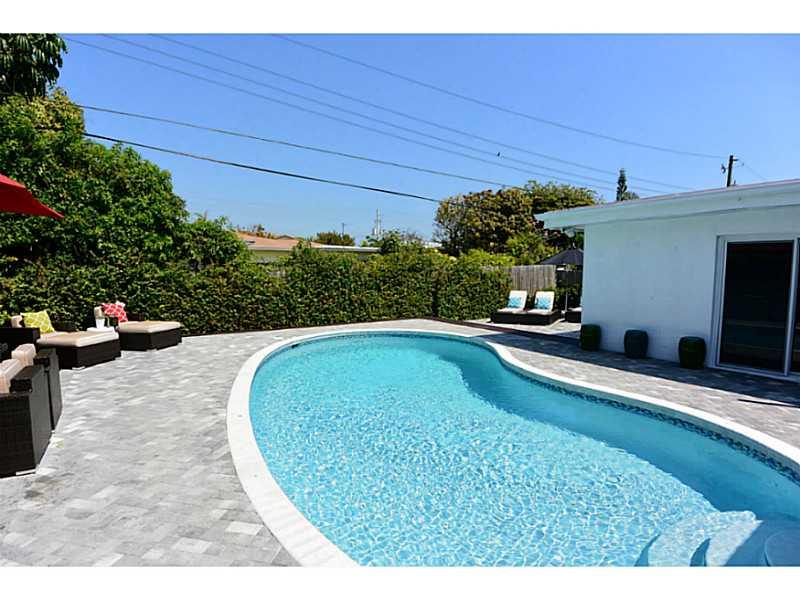 Back on the market! Tastefully redesigned MiMo Ranch in a peaceful & idyllic setting overlooking renowned Normandy Shores Golf course in a premier gated community. Great room has high ceilings in Italian wood grain porcelain tile flooring throughout. Mode rnized kitchen/bathrooms w/ all new appliances & fixtures. Hurricane impact windows/doors. Master suite has views & access to a beautiful manicured private pool area. Covered outside terrace,great for entertaining. Driveway allows for easy guest parking.