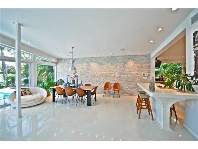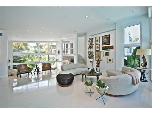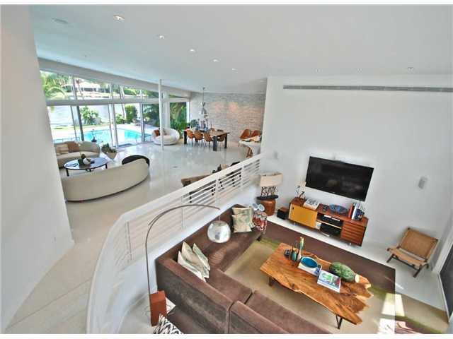 Featured in Luxe magazine. Compl. renov. 2010, with its crisp stylish lines flawlessy preserved. Floor to ceiling glass & double height ceilings, split level loft design,white terrazzo floors, double island open kitchen. Views of Indian Creek, Biscayne Ba y & Downtown Miami. Oversized pool, barbecue, new dock & seawall.C Brk note.