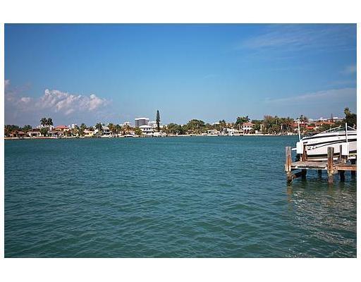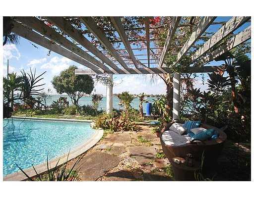 Tropical oasis sited directly on Biscayne Bay in gated Miami Beach neighborhood with stunning views and sunsets. Charming and private, enclosed with atrium and surrounded by exotic tropical landscaping, this home exudes an aura of serenity. Impeccably mai ntained, wide-open floor plan with terrazzo floors, eat-in kitchen, spacious rooms. Interior unites beautifully with pool and Biscayne Bay.