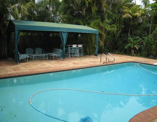 Spacious 4 Bdrm split plan, delightful mastersuite with pretty new bathroom, lots of closet space, 4th room perfect for office, efficency, recreation sparkling white kitchen, Lg cuban tile throughout, fireplace, open pool/patio with canvas gazebo, loaded with charm, lush landscaping. Quiet interior st. 2 carport + storage.