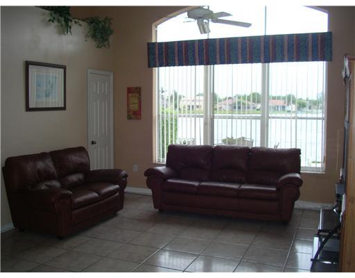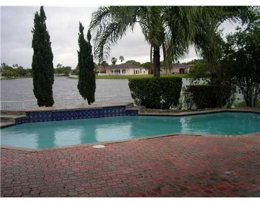 WAKE UP TO A STUNNING POOL AND WIDE LAKE! Sensational open floor plan with high ceilings and lots of windows make it bright inside; large functional kitchen with wood cabinets & Tiled Counters; 17x17 Tiles throughout living areas and one bedroom; large b edrooms; Fabulous fenced back yard with a large POOL, privacy landscaping, and a nice wide lake view. This unique 4-Bed & 3-Bath home has a 2-car garage and is in move-in condition! Won't last long - Call us now!