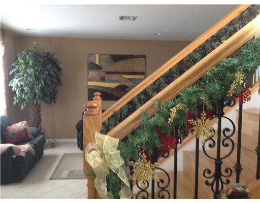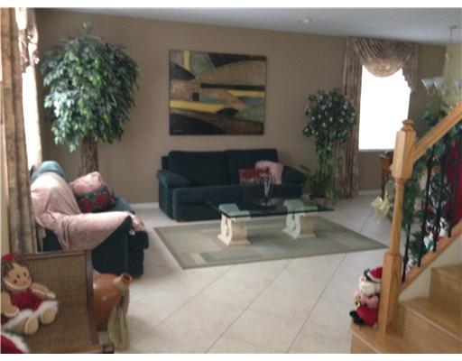 Look no more! This is your dream home! Immaculate home with 5 bedrooms upstairs and one bedroom and full bath downstairs. Ceramic floors. Kitchen with 42 inch wood cabinets and an oversized island with granite countertops. Wood laminate staircases with w rought iron banister. Extra large family room. Sitting area upstairs. Barbecue area with 2 burners stove and sink. Plenty of Room for a pool. Community has pool with water slide, miniature golf, playground, basketball courts, party rooms. Must see!