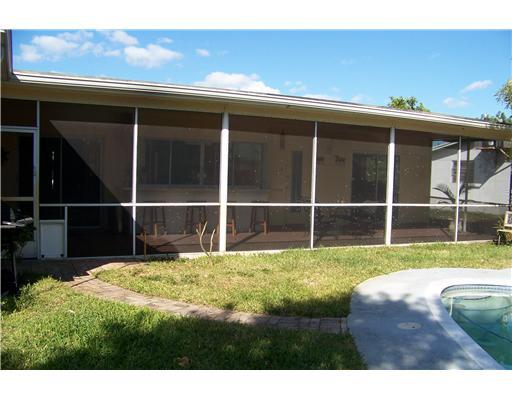 Great house with nice size bedrooms and split floor plan, master has walk in closet, kitchen has large window with pass thru to the screened in patio, pool has a dolpin water fall