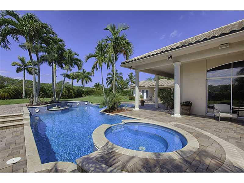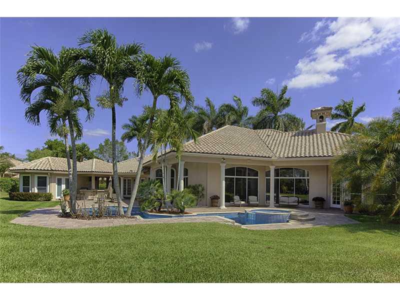 Spacious waterfront home in Weston's exclusive Windmill Ranch Estates. Undoubtedly one of Weston's premier properties. This custom built homes was professionally decorated featuring the finest craftsmanship, custom millwork and the highest attention to d etail. No detail has been overlooked in this 5,300sf estate home with 6 bedrooms/ 4.5 bathrooms/office. Incredible outdoor entertaining area with oversized heated pool, summer kitchen, and guest house. Brand new roof. This home is move-in ready.