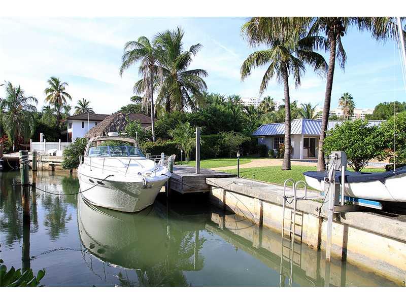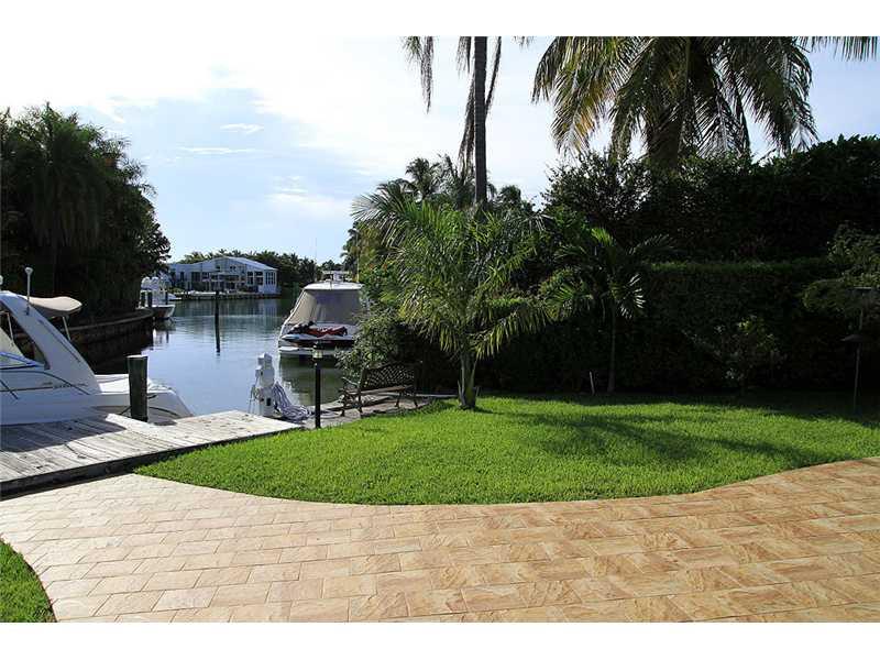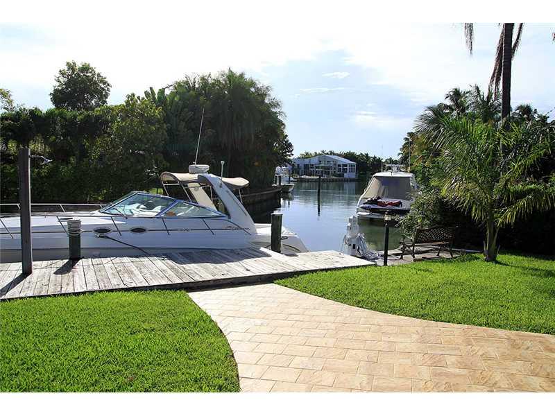 Best corner lot on the water in Key Biscayne, with 19,000+sq.ft. per survey, at corner of Island and Cape Florida Drives, with a driveway to each street . Acai and other exotic fruit trees. Protected dock for large boat and direct access to the Bay. Bucol ic privacy around the pool and deck, with granite topped bar. Two large master suites with secret and peaceful garden. Kitchen and family room open to pool and dock area. Library/office suite or fifth bedroom. New roof; three A/C units/zones. Beach club.