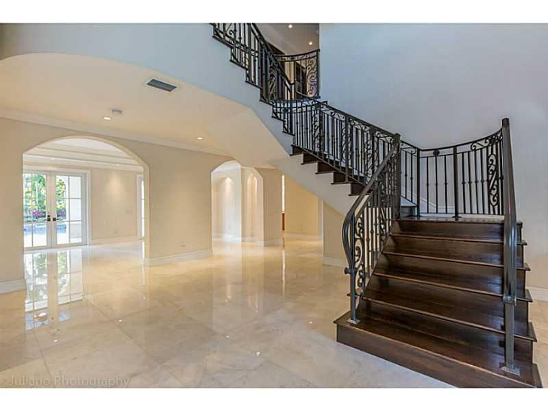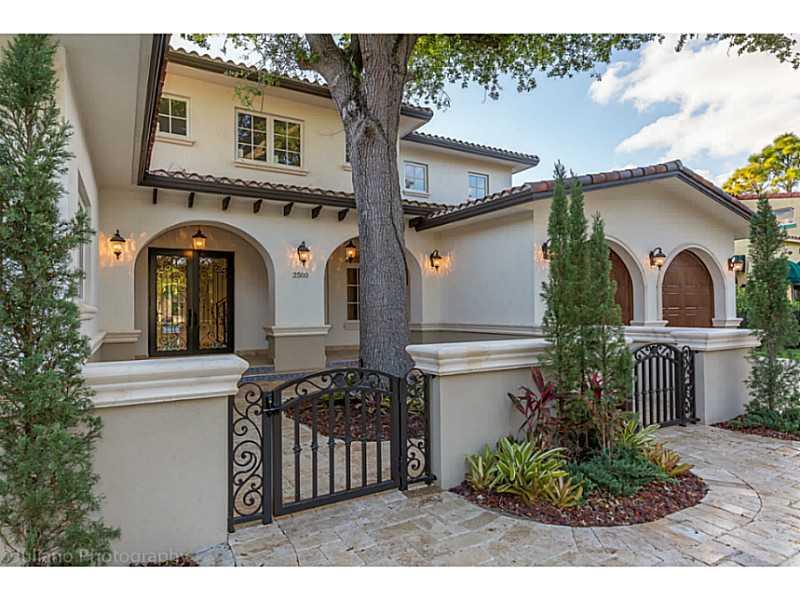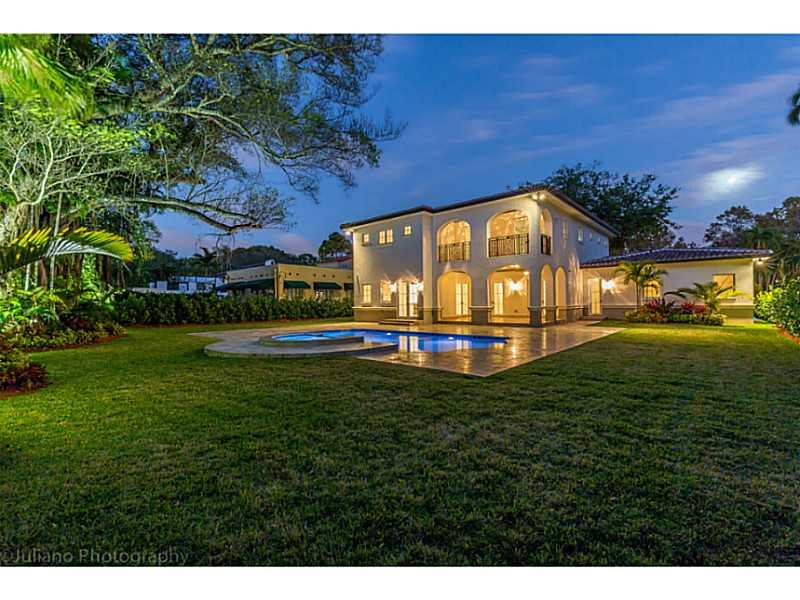 Rare Opportunity Brand New on triple+ lot on quiet Gables street, by Master Arch Eduardo Calil. All white bright transitional Med w/stone courtyard centered around grand Oak.Great flrplan w/living rm & kit/family open to large covered terrace,huge backyar d.3/3.5 dwnstrs & 3/3 up.Fab master w/2 masterfully builtout walkins,glamorous bath suite & large terrace. 6th room downstairs w/fireplace can be guest/den/office.High/coffered/wood clad ceilings,large impact w/doors, custom finishes,sec cameras,gas line.