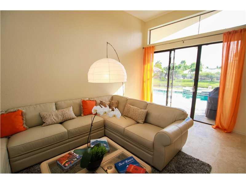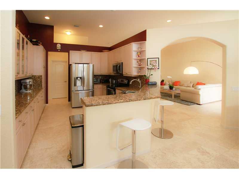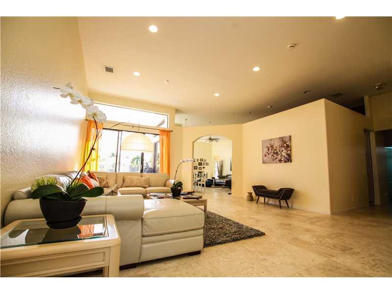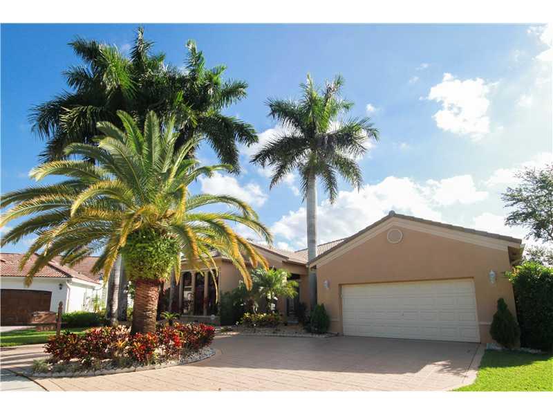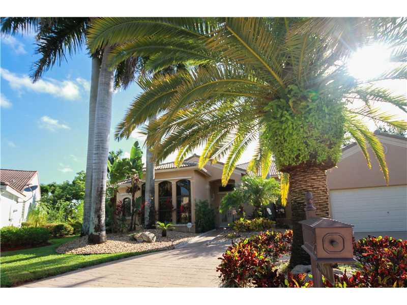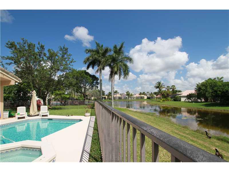 Gorgeous Home placed in a cul-de-sac with a circular driveway & glass front doors. Triple split bedroom floor plan. Beautiful CORAL FLOORS in the main living area, WOOD FLOORS in the master suite & one bedroom. Master suite has plantation shutters, tray c eiling & oversized closet w/built-ins including a dresser. Jacuzzi tub & large shower. Fenced Lot is 16772 sq ft w/155 ft. on water & pool w/ spa. Large kitchen with warm wood cabinetry, granite counter tops & stainless steel appliances. MUST SEE!